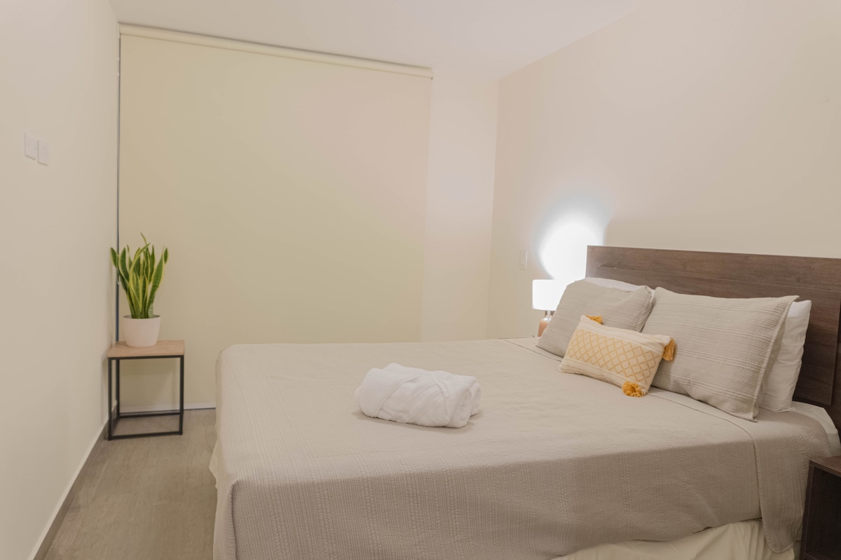 Byggingin (AVITAT ONE) er staðsett í Lomas de San Francisco hverfinu, mjög miðsvæðis í borginni San Salvador með greiðan aðgang að helstu þjóðvegum til flugvallar og strandar. Það er nálægt helstu verslunarmiðstöðvum, matvöruverslunum, bensínstöðvum, veitingastöðum og söfnum. Íbúðin er vel innréttuð til að fullnægja þörfum þínum. Það er með stórkostlegt útsýni yfir eldfjallið og borgina í San Salvador. Gestir okkar eru með aðgang að þægindum byggingarinnar: líkamsræktarstöð, ráðstefnusal og sundlaug sem er yfirbyggð að hluta.