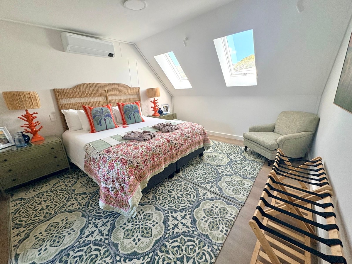 Verið velkomin í þessa friðsælu og rúmgóðu íbúð á efri hæðinni með sundlaug öðrum megin og svölum með ótrúlegu sjávarútsýni hinum megin. Herbergið sjálft er hlýlegt, notalegt og listrænt. Það er nóg af geymslu, stöðum til að sitja á og slaka á, aðgangur að sundlauginni og öruggt bílastæði við götuna. Það sem mér finnst skemmtilegast við herbergið er tilfinningin sem maður fær þegar maður er þar... maður virðist vera í fríi... relaaaaxx. Aðrar 2 íbúðir í eigninni: /h/westcliff-pool-room-hermanus /h/westcliff-garden-room-hermanus