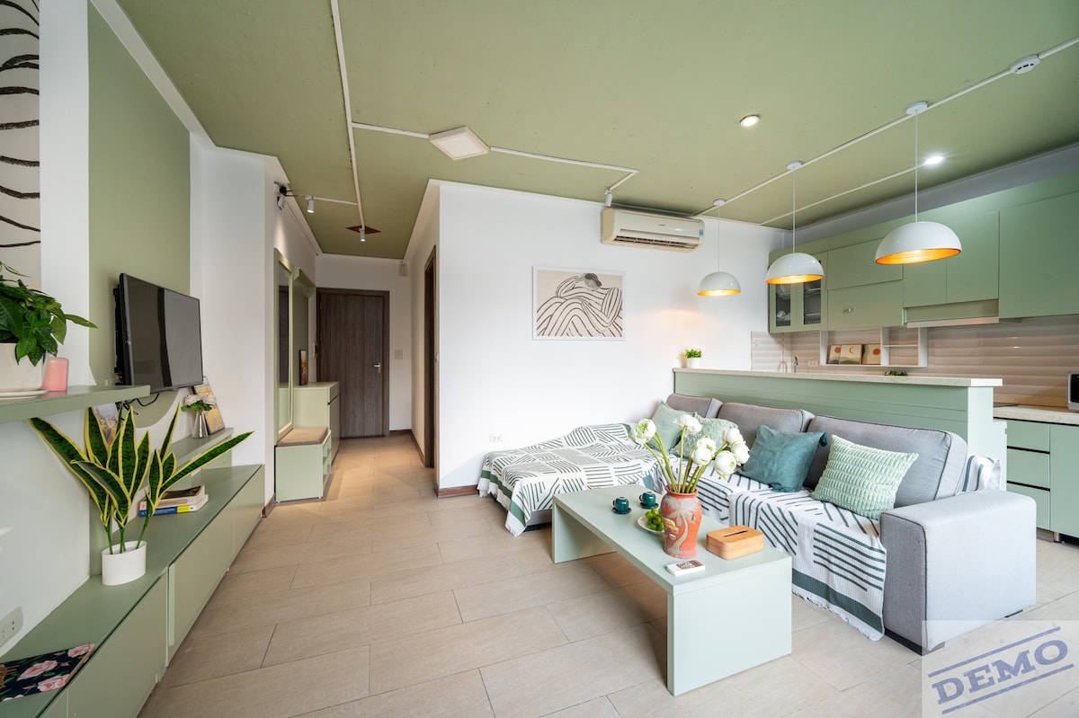 Halló sólskin, 35m2 stúdíóið þitt er fullbúið húsgögnum með sér baðherbergi og eldhúskrók og svölum. Ókeypis hraðvirkt og stöðugt þráðlaust net (250Mbps niðurhals-/upphalshraði). Premium síað mjúkt vatn fyrir viðkvæma húð. Knúið af sólarorku. Rólegur staður fyrir djúpan nætursvefn. Ókeypis bílastæði á staðnum. Ókeypis þrif einu sinni í viku. Fullbúið með lyftu í byggingunni. Líkamsrækt á þakgarðinum. Nálægt West Lake, frægum götumat og matvöruverslunum. Komdu í vistvæna hreiðrið okkar í dag!