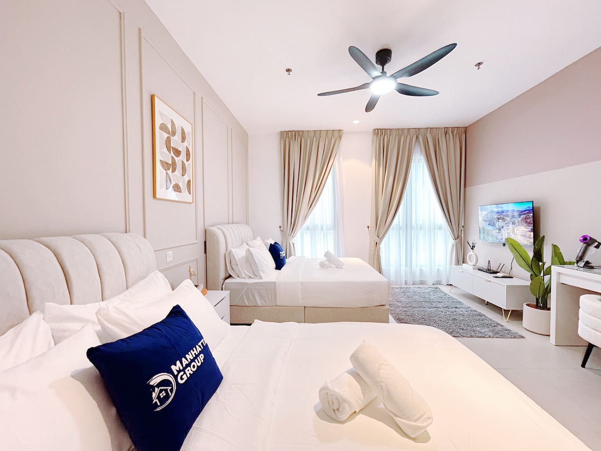 ✨ Brand New Studio at MOSSAZ – Sky Pool, Netflix, Ample Parking & WiFi! ✨ Stay in our brand-new studio condo (344 sq ft) at MOSSAZ! Perfect for couples or small groups (up to 3 guests). Features: Queen bed + sofa bed Compact kitchenette (microwave, no stove) 43" SMART TV with Netflix 100 Mbps WiFi Stunning infinity pool (39th floor) Near One Utama Mall Quiet, cozy, and budget-friendly! No smoking/pets. Quiet hours: 10 PM–9 AM. Book now! 🌟