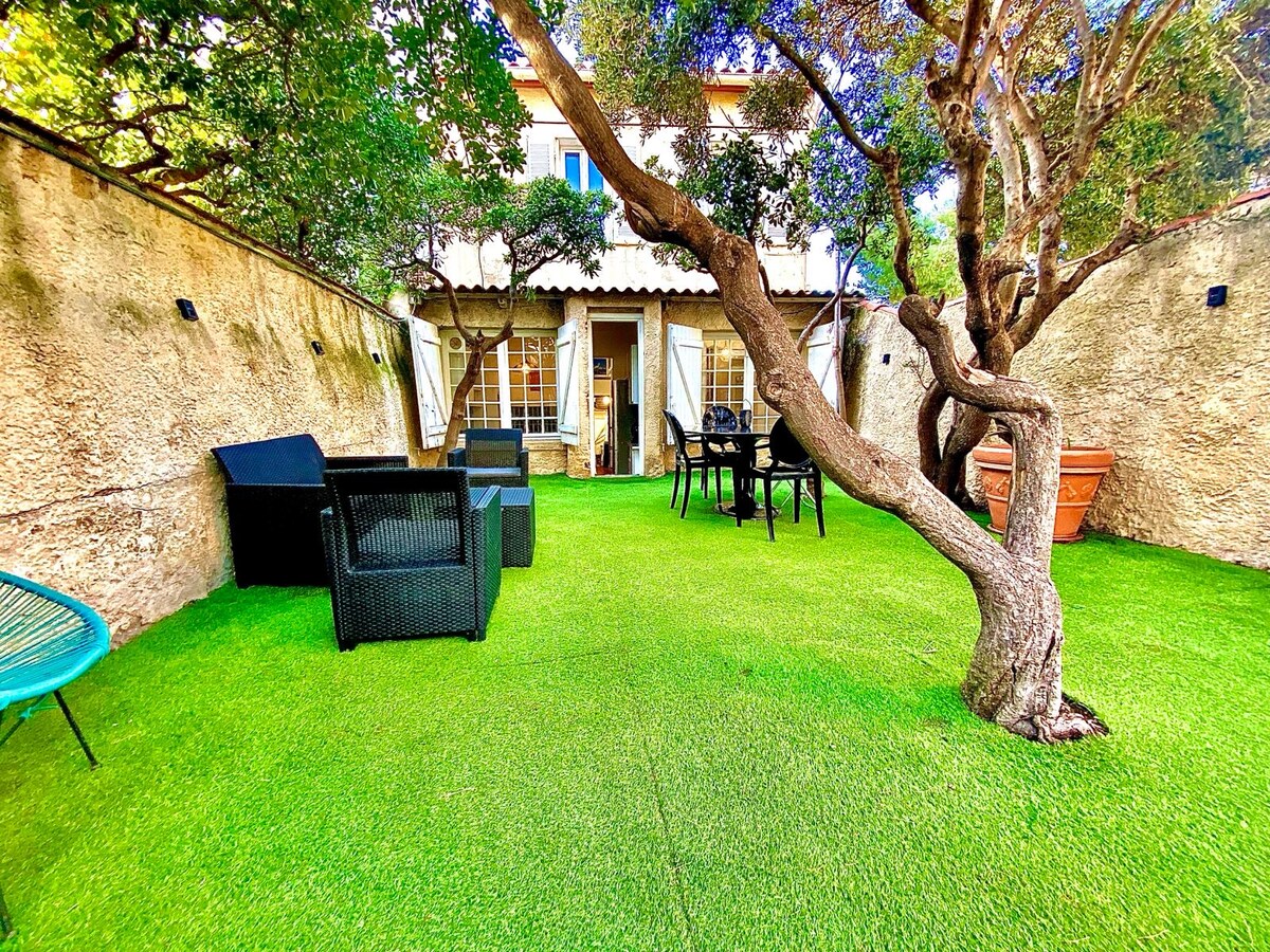 House with garden in absolute calm located in the very popular district of Malmousque, 2 steps from the sea, the port of Malmousque and the Auffes valley. Heillandi 3ja herbergja hús sem er um 60 m2 að stærð og garðurinn með 6 rúmum með snyrtilegum tíma. Stofa með svefnsófa / opið og vel búið eldhús, tvö svefnherbergi með hjónarúmi og skáp, baðherbergi og Wc ásamt landslagshönnuðum garði. Gæðaverslanir í nágrenninu, rúta, veitingastaðir og strendur Sérsniðnar móttökur til að afhenda lyklana.