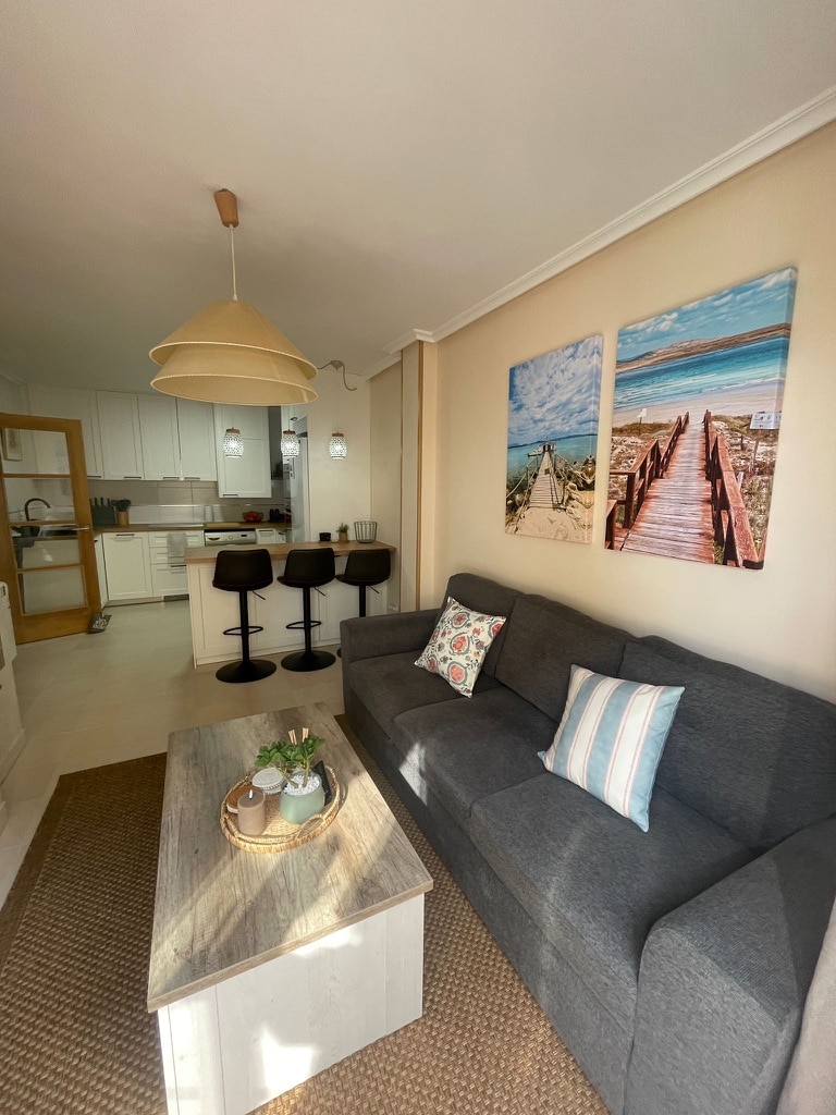 Rúmgóð og nýuppgerð íbúð með 2 svefnherbergjum og svefnsófa, fullkomin til að njóta sjávarins og hvíldar. Hún er með stóra einkaverönd með borðstofuborði og slökunarplássi, þráðlausu neti og hurð með beinum útgangi að sameign. Íbúðasamstæðan er með heilsulind, nuddpott, gufuböð, 4 útisundlaugar, tennisvöll, billjard, borðtennis, garða og leikvöll. Innifalin er bílskúr og öll þjónusta, 5 mín. Strönd í 3 mínútna fjarlægð og hin stórkostlega Playa de las Cathedrales í aðeins 5 mínútna fjarlægð.