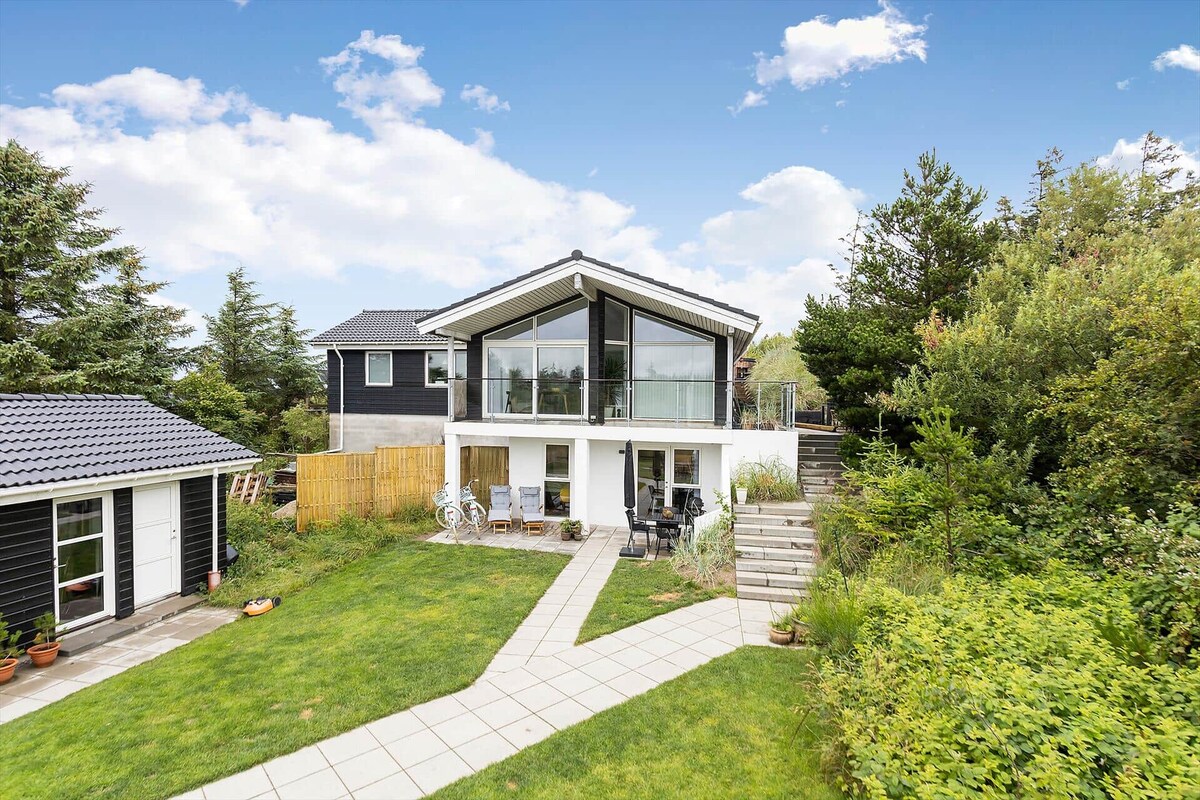 Þessi lúxusvilla er í göngufæri frá miðborg Blokhus og í aðeins 5 mínútna göngufjarlægð frá standinum (300 m). Það er langt frá næsta nágranna, sem þýðir að þú nýtur sérstakrar kyrrðar og andrúmslofts í húsinu og þú getur verið afskekktur úti á vel staðsettum veröndunum, sem umlykja húsið frá sólarupprás til sólseturs og það er alltaf fullkominn staður til að njóta hlýja sólargeislanna í skjóli fyrir vindi og með hljóð Norðursjávar í bakgrunninum.