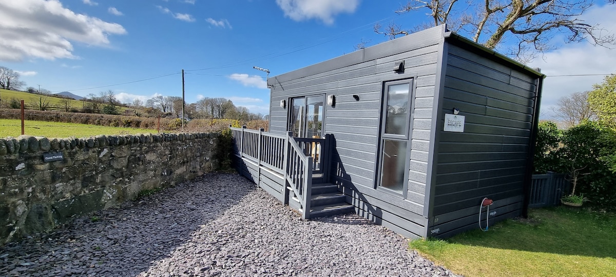 Skálinn er á fjölskyldubýli og er friðsælt lúxusathvarf með stórkostlegu útsýni yfir Snowdonia og Cardigan Bay. Nautgripir á beit í opnum haga allt um kring. Faint hljóðið í straumnum rennur í fjarska sem þú getur furða niður í gegnum forna skóglendið. Njóttu útsýnisins frá Snowdon niður velsku ströndina frá king size rúmi. Hlýr glóðin frá eldinum sem flögrar á koddanum. Stór regnsturta og hlýja undir fótum frá gólfhita sem er fullkomin á köldu kvöldi.