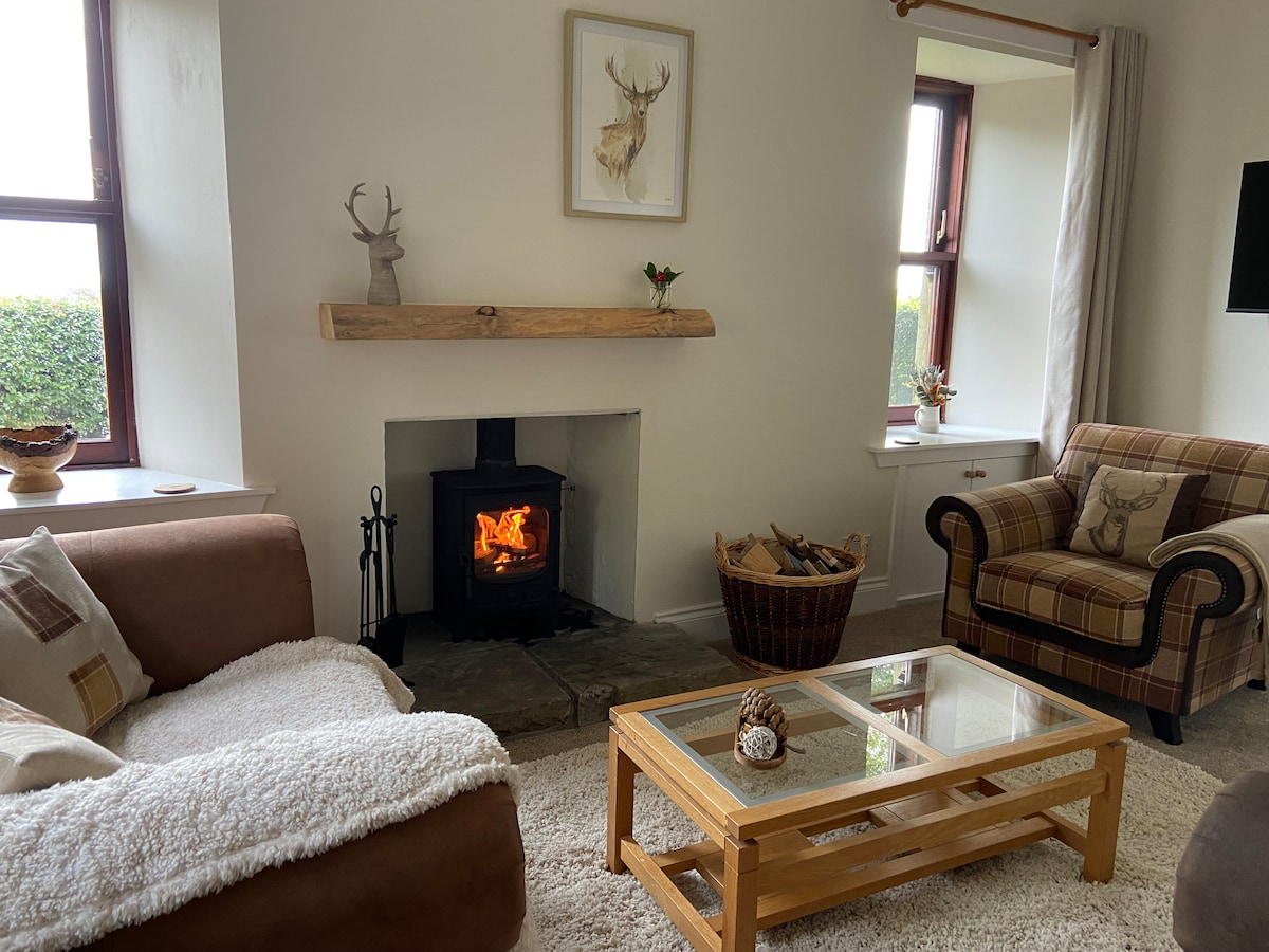 Njóttu stórkostlegs útsýnis yfir ána Tay frá lúxus sveitasetri (35 mín. frá St Andrews og 50 mín. frá Edinborg). Old Parkhill í Hyrneside er fallega enduruppgerð 3 herbergja sveitabústaður með stílhreinu opnu rými, hönnunareldhúsi, viðarofni og upphituðum, pússuðum steypugólfum. Slakaðu á í marmarbaðherbergjum, hvoru tveggja með baðkeri á fótum og hinum með sturtu sem hægt er að ganga inn í. Franskar dyr opnast út í borðstofusvæði í húsagarði + pizzuofn, eldstæði og margar hektarar af landbúnaði, skógi + göngustígum til að skoða.