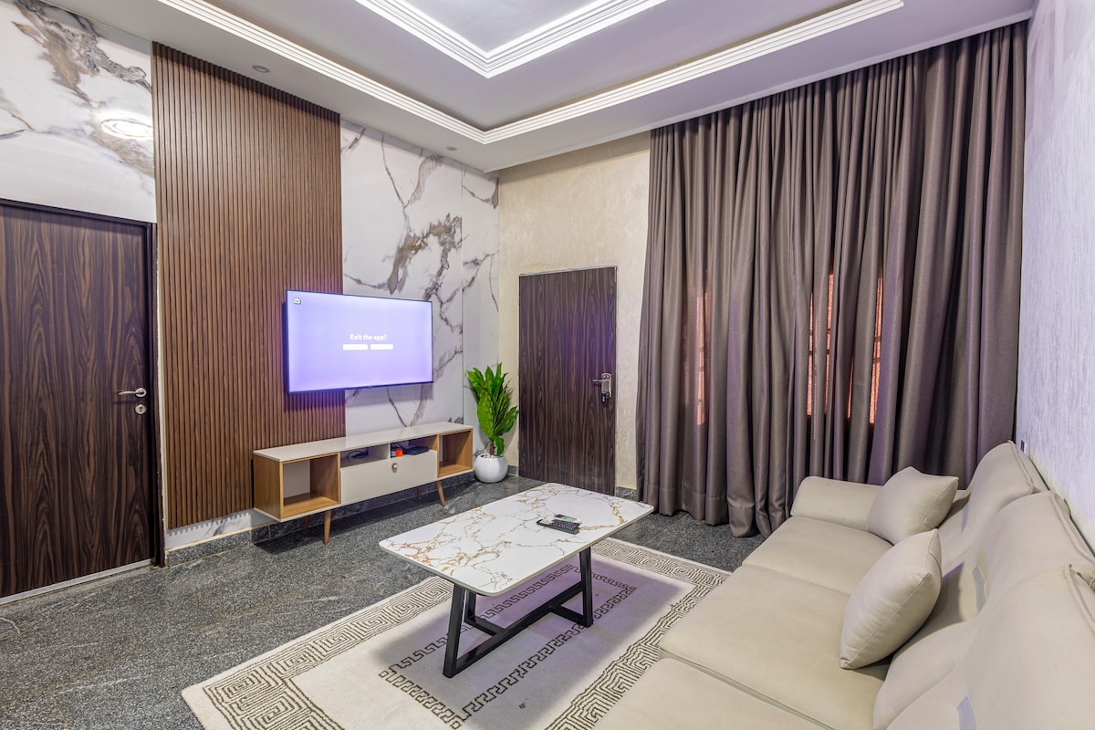 Þér er velkomið að slaka á og finna þægindi í glæsilegri lúxusíbúð með 2 svefnherbergjum sem staðsett er í miðborg Abuja. hún er meira en heimili að heiman vegna þess að frá staðsetningu til innréttinga niður í þægindi og öryggi var hugsað vandlega um þarfir gesta okkar. jahi-hverfið er mest raðað staðsetning vegna þess að það er nálægt wuse 2 , maitama, Asokoro og stöðum í miðborginni, það er flottasta svæðið í jahi habiting aðallega háklassa í þjóðfélaginu. það er vinalegt og Serene.