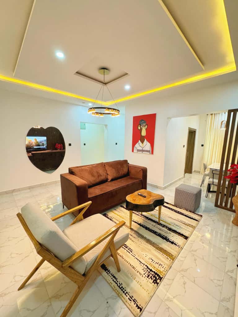 Komdu með alla fjölskylduna á þennan frábæra stað með miklu plássi til að skemmta sér. Gistu í þægindum í Vino Prime-íbúðinni, Katampe. Hún er stílhrein þjónustuíbúð með tveimur svefnherbergjum, aflgjafa með áriðli allan sólarhringinn, hröðu Wi-Fi, loftkælingu, snjall-sjónvarpi og fullbúnu eldhúsi. Tilvalið fyrir fjölskyldur, pör, ferðamenn og vinnuferðamenn. Njóttu heitra sturtna, öruggrar bílastæðageymslu og þægilegs aðgengis að matvöruverslunum í Abúja.