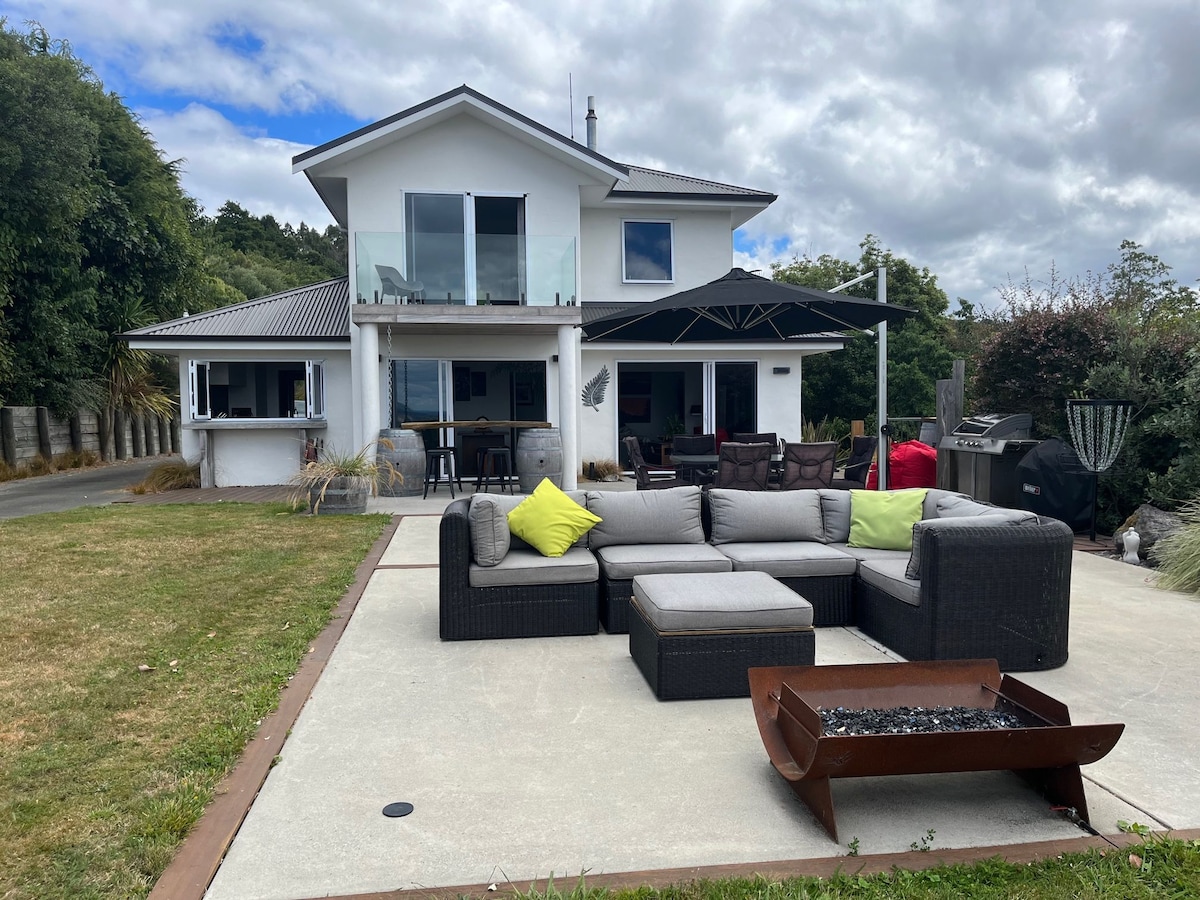 Komdu og upplifðu glæsilegt heimili okkar við vatnið með mögnuðu útsýni yfir Tongariro-þjóðgarðinn og fjöllin þrjú. Þú verður umkringdur 24 hektara af gróskumiklum, friðsælum runnum og fuglalífi. Aðeins 10 mínútur til Taupo til að njóta veitingastaða, ævintýra og heitra varmaalauga. Skoðaðu hina heimsþekktu Huka Falls og Maori-klettinn í nágrenninu. Á staðnum er mikið úrval af gönguleiðum, hjólastígum og flugustöðum. Það besta sem North Island hefur upp á að bjóða bíður þín