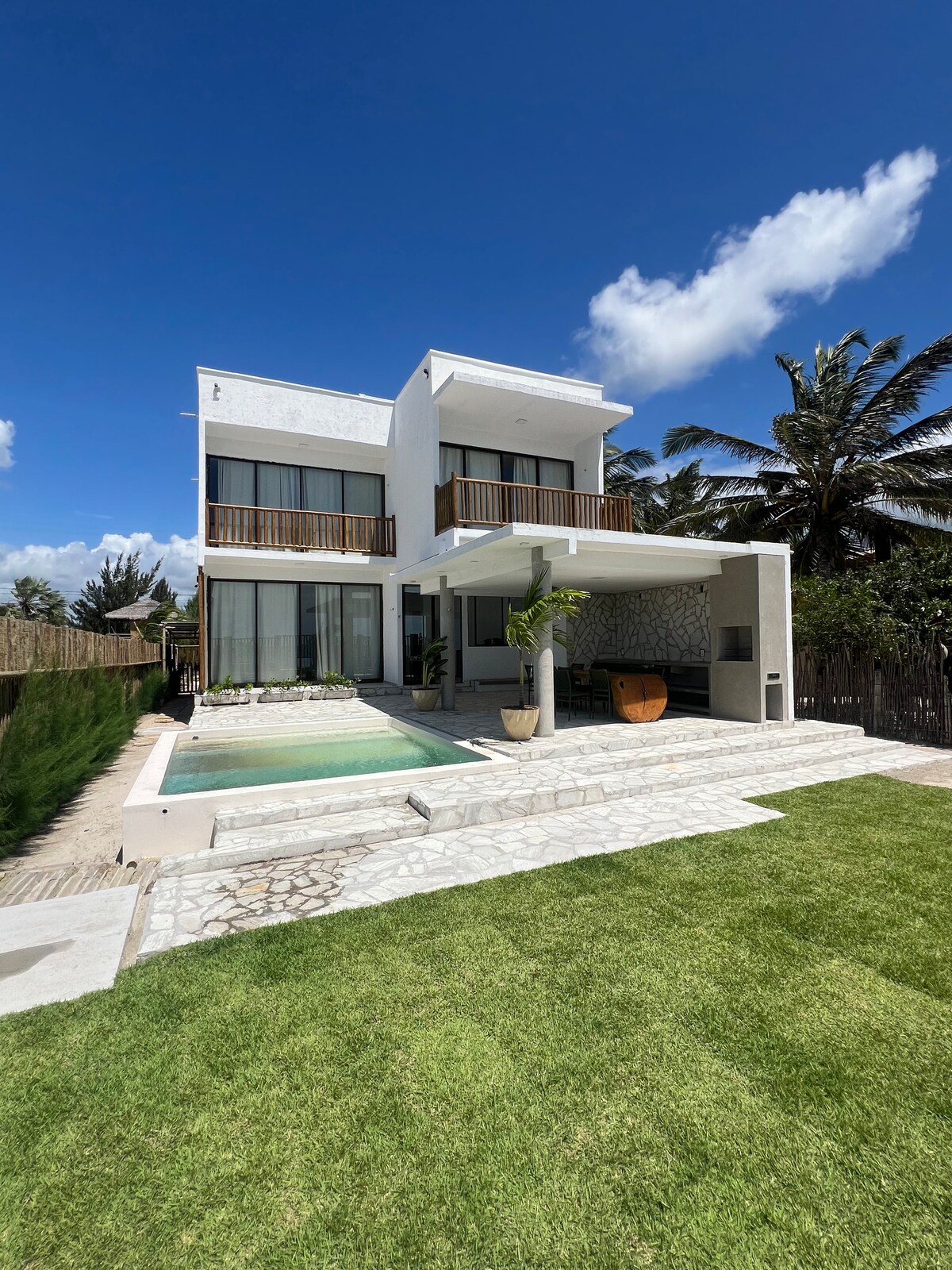 Ef þú ert að leita að ógleymanlegri upplifun á einum af heillandi áfangastöðum Brasilíu er Villa Dodô tilvalinn staður. Villan er staðsett í hjarta Ceará, í þorpinu Barrinha de Baixo, 18 km frá Jericoacoara og 7 km frá Preá og var hönnuð til að bjóða upp á þægindi, fegurð og ró. Fullkominn fyrir náttúruunnendur og flugdrekaflakkara. Hér er sjarmi, þægindi og arkitektúr sem endurspeglar einkenni svæðisins.