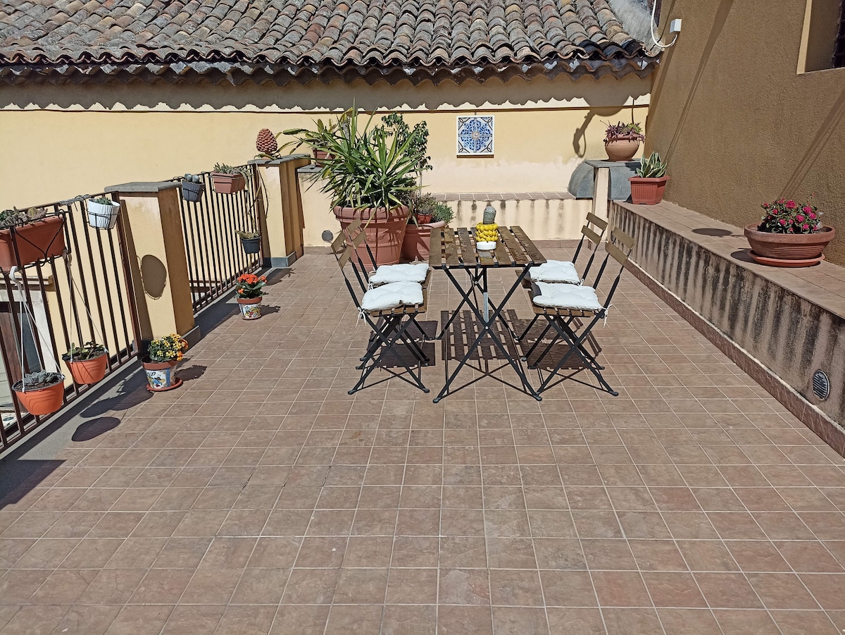 Velkomin/n í Acireale! Þetta hefðbundna sjálfstæða hús frá 19. öld var sætt heimili okkar í 2 ár. Þessi gistiaðstaða er staðsett í sögulega miðbænum, í aðeins 300 m fjarlægð frá dómkirkjutorginu eða frá inngangi „La Timpa“ náttúrufriðlandsins við sjávarsíðuna. Það er tilvalinn staður fyrir þá sem vilja fara „á bíl“ og njóta bæði náttúrunnar og borgarlífsins. Góð nettenging, vinnuhorn og friðsælt hverfi gera þennan stað fullkominn fyrir snjallt starfsfólk.