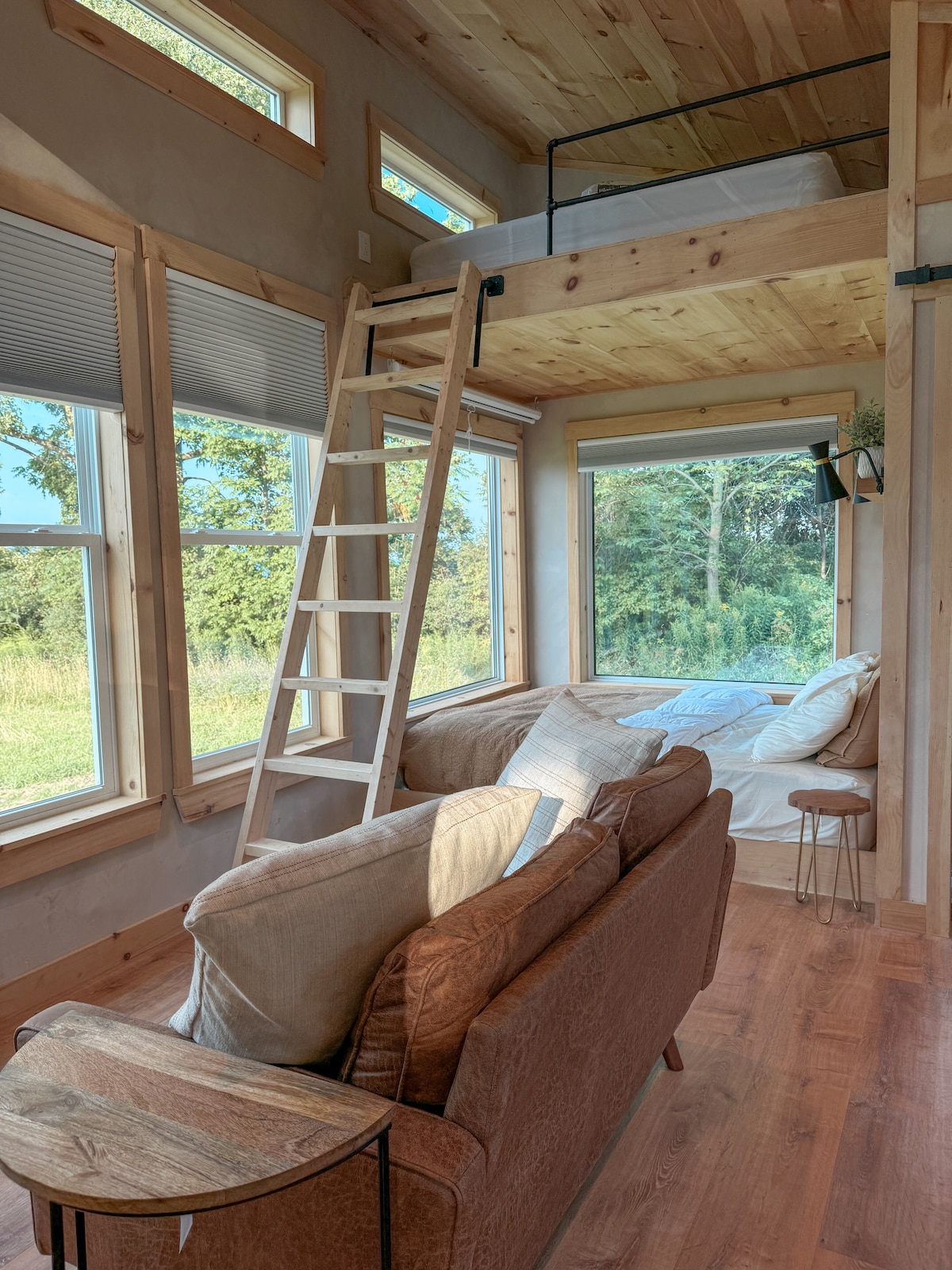 Einstakt athvarf sem er vandvirknislega hannað til að hvílast og hlaða batteríin eftir að hafa skoðað sig um í fallegu Adirondack-eyðimörkinni okkar. Öll herbergin eru með náttúrulegri birtu og bjóða upp á róandi ramma náttúrunnar. Fylgstu með sólinni í gegnum skóginn og risið yfir fjöllin í gegnum víðáttumikla glugga. Hækkaðu hæð hússins og sýndu hvert um sig meira landslag. Upplifðu hefðbundna finnska sánu með viðarkyndingu og hladdu algjörlega um leið og þú tekur á móti hörðu Adirondack-veðrinu okkar. Við vonum að þú njótir þess hér.