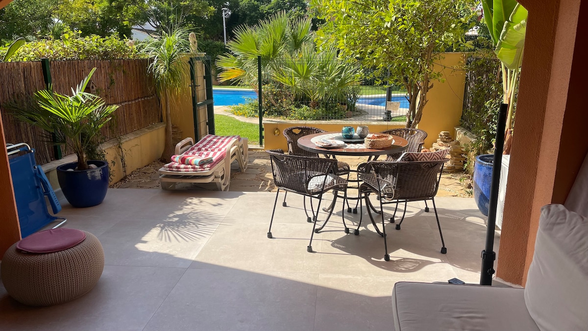 Lovely one bed garden flat, Pool/Jacuzzi, ac/wi-fi
