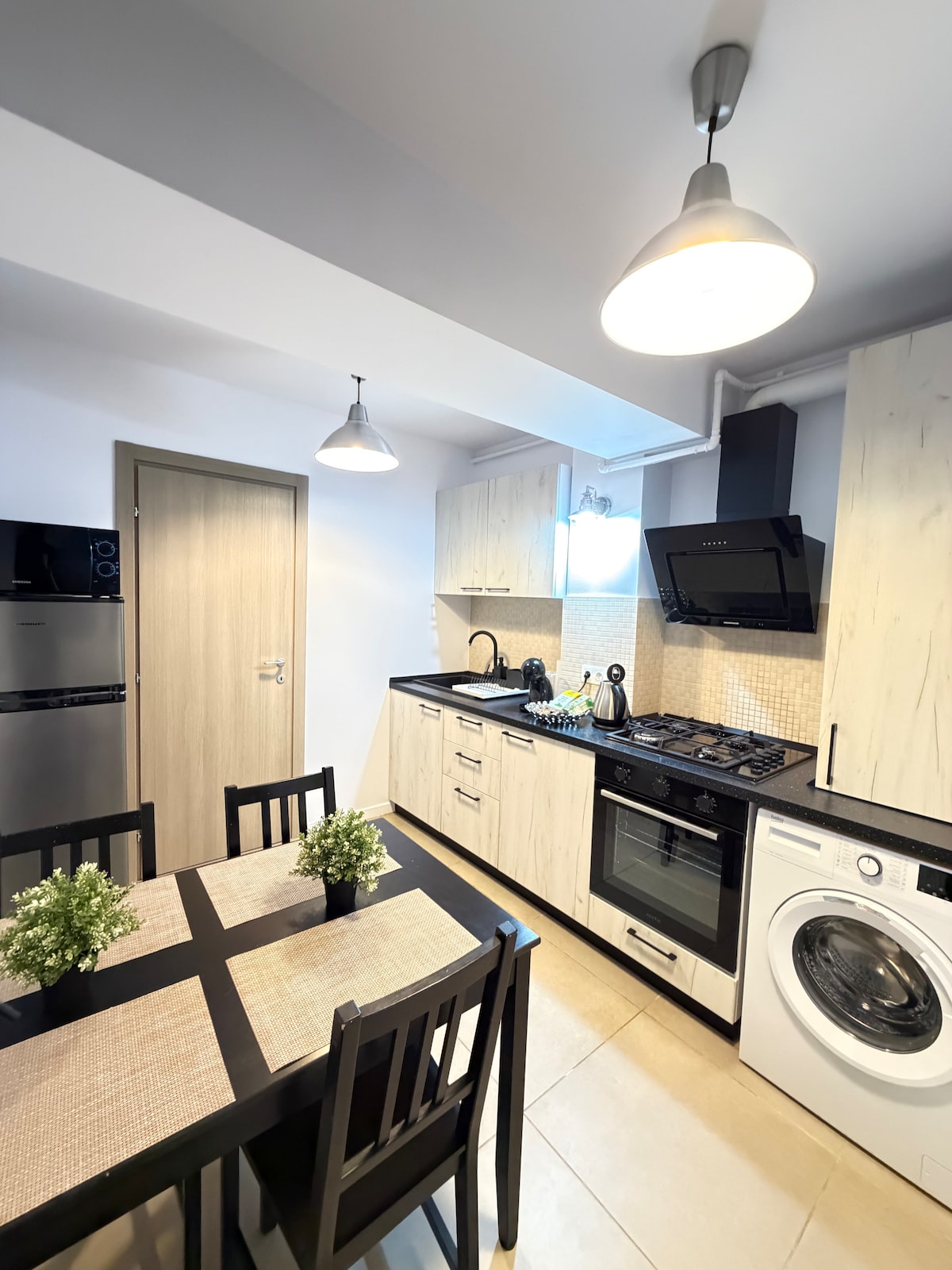 Þessi fallega 3 svefnherbergja íbúð er staðsett í hjarta Búkarest við landamærin milli lifandi borgarinnar og gamla bæjarins. Staðsetningin verður ekki betri en þetta. Frá stóru veröndinni og svölunum er frábært útsýni yfir borgina. Auðvelt er að komast að staðnum með almenningssamgöngum (strætó og neðanjarðarlest). Þessi bjarta íbúð var endurnýjuð að fullu sumarið 2023 með hágæða efni og býður upp á öll möguleg þægindi fyrir fullkomna dvöl.