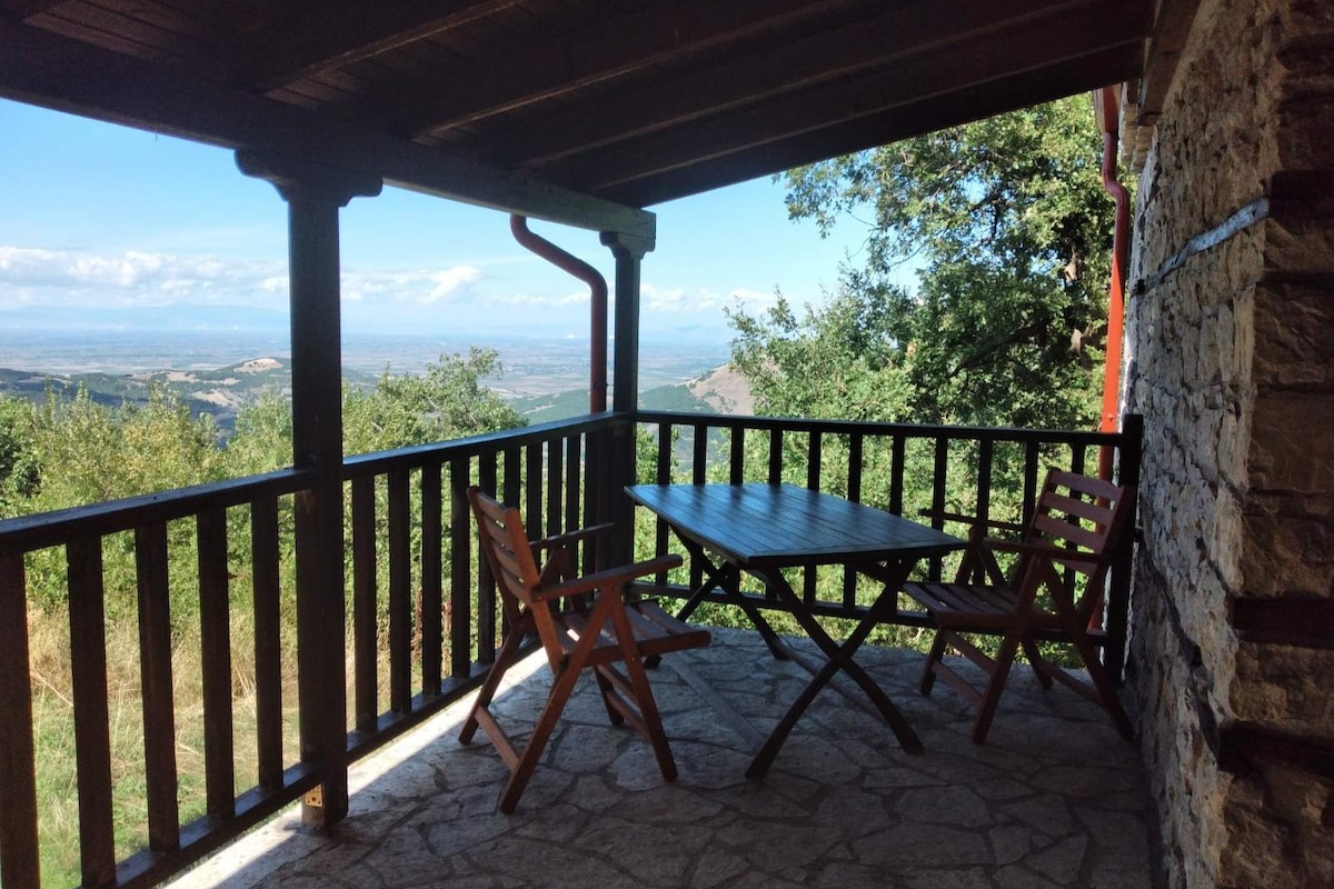 Staðsett í græna þorpinu Belokomiti, Lake Plastira, í 900 metra hæð, það er 2 km frá Neochori og 40 km frá Karditsa. Það rúmar allt að sex manns og hefur þrjú svefnherbergi, fullbúið eldhús - borðstofu, stofu með arni og tvö baðherbergi. Það innifelur þrjú sjónvörp, þráðlaust net, upphitun, grill og einkabílastæði. Njóttu útsýnisins yfir Agrafa-fjallgarðinn og Lake Plastira frá stóru veröndunum tveimur!