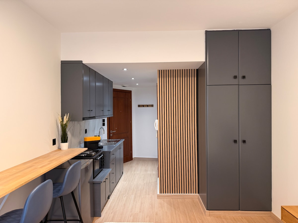 A stylish luxury rooftop apartment offering comfort, privacy and a premium city-living experience. The furnished rooftop balcony is perfect for relaxing, enjoying your coffee or working remotely. The modern open-plan interior is fully equipped and ideal for couples and business travelers. Located in a central area with easy public parking right outside the property. Amenities: ✅️Fully equipped kitchen ✅️comfortable bed ✅️fast Wi-Fi ✅️Smart TV ✅️ Netflix ✅️air conditioning