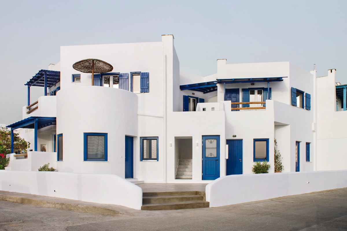 Ochre Dream is a complex of six apartments located in Naousa, the significant port of Paros. Located ten minutes by feet from the center of Naousa. You can have easy access to food, amusement etc. The breathtaking sunset view from the villas, will be an everyday experience for you and your close ones. At anytime of the day you can enjoy your swim in the beach Mikro Piperi located right in front of your small villa.