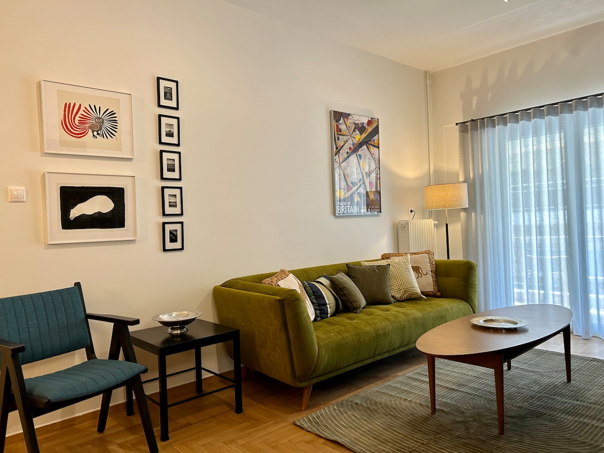 Einstök og sólrík íbúð í miðborg Aþenu. Íbúðin er á fyrstu hæð í sögufrægu stórhýsi frá 1930 í Bauhaus. Íbúðin er 200 fermetrar að stærð og býður upp á jafn stóran þakgarð. Íbúðin er nálægt neðanjarðarlestarstöðinni (5 mín ganga), nálægt verslunum og þægindum, í 15 mínútna göngufjarlægð frá National Archeological Museum, Exarheia og Omonia torginu. Það er staðsett nálægt líflegu og líflegu Kypseli-svæði og í 25 mínútna göngufjarlægð frá Plaka og Akrópólis.