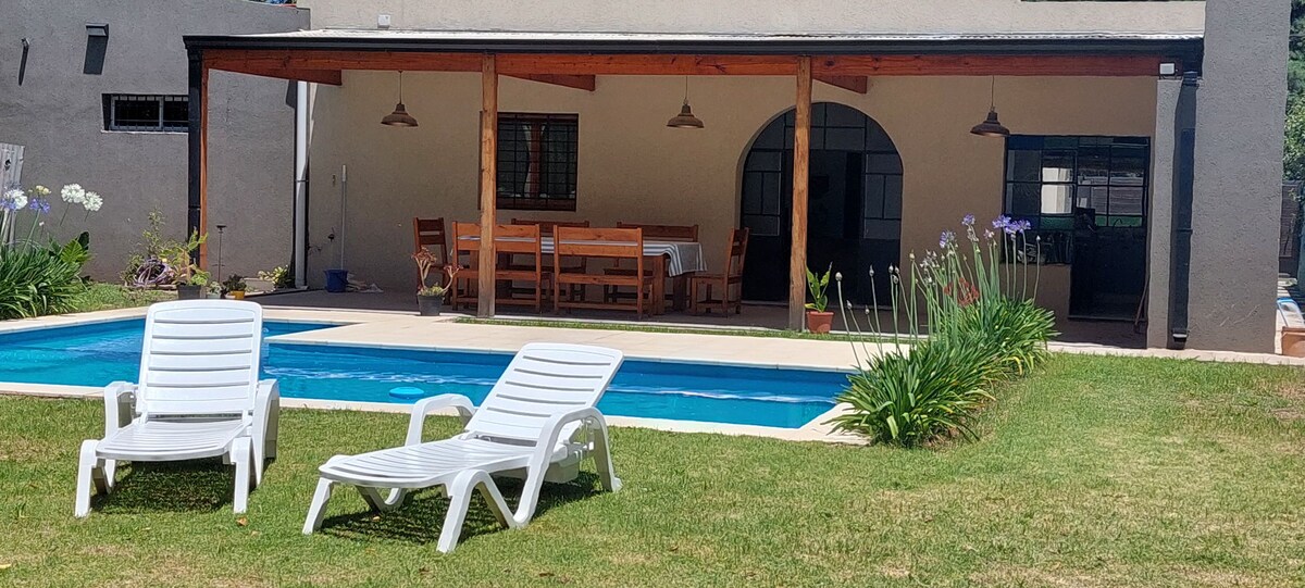Kyrrlátt sveitahús staðsett í hektara almenningsgarði í einstakri sveit í klukkutíma fjarlægð frá CABA og í nokkurra mínútna fjarlægð frá miðbæ Mercedes. Tilvalið til að hvílast, aftengja sig og njóta náttúrunnar. Í húsi með sundlaug fyrir fjóra eru tvö svefnherbergi, eitt með hjónarúmi og annað með tveimur einbreiðum rúmum, baðherbergi, stórt fullbúið eldhús, borðstofa, gallerí, grill og eldavél Gæludýr eru leyfð. Starlink þráðlaus þjónusta er í boði.