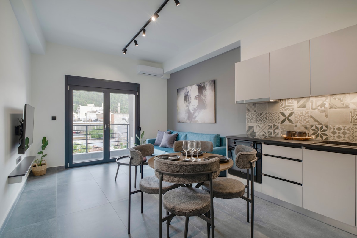 Πλήρως εξοπλισμένα διαμερίσματα, σχεδιασμένα για να προσφέρουν άνεση, λειτουργικότητα και αίσθηση σπιτιού. Κάθε διαμέρισμα διαθέτει φωτεινούς χώρους, σύγχρονη διακόσμηση και προσεγμένες λεπτομέρειες που κάνουν τη διαμονή ευχάριστη τόσο για σύντομες όσο και για μεγαλύτερες αποδράσεις. Οι επισκέπτες απολαμβάνουν άνετα κρεβάτια, εξοπλισμένη κουζίνα, γρήγορο Wi-Fi και σύγχρονες παροχές, ενώ η πολυκατοικία διακρίνεται για την καθαριότητα, την ησυχία και την εύκολη πρόσβαση.