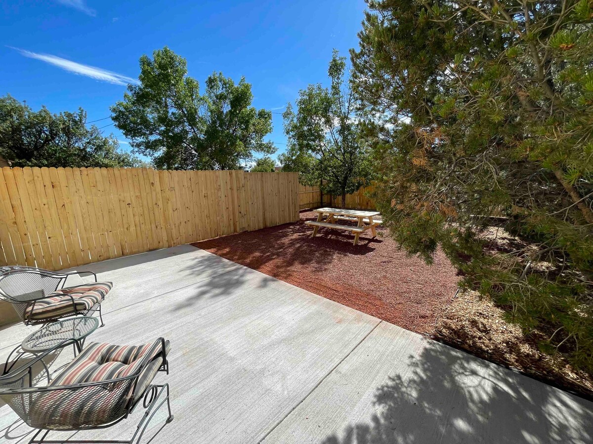 My place is 1.2mi from the plaza in a conveniently located residential neighborhood. With its small, simple, Santa Fe style, you'll feel at home right away! The main room has a kiva fireplace & sleeper sofa as well as a full kitchen & small dining area. There is a separate bedroom with a closet & washer/dryer. The enclosed, private courtyard is perfect for kids & pets. This guesthouse is separate from, but next to my home where I live with my partner, our son, and fuzzy dogs!