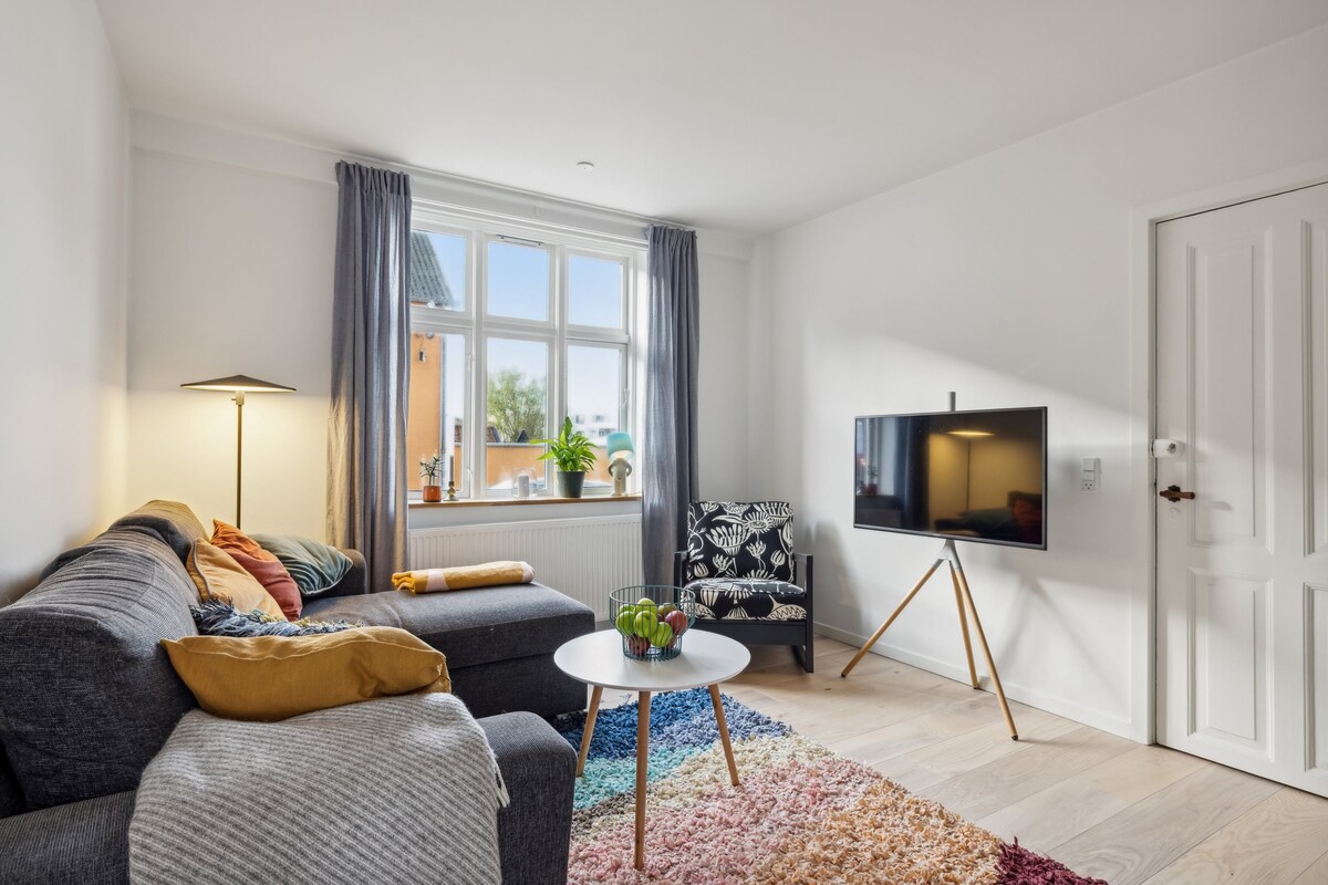 Lítil, notaleg orlofsíbúð (27m2) í miðri gamla bænum, nokkra metra frá göngugötunni með Maltfabrikken í bakgarðinum og verslunarmöguleikum handan við hornið. Þú munt búa í vel viðhaldið einnar herbergis orlofsíbúð, með nútímalegu baðherbergi og litlu, vel virkandi eldhúsi. Allt er vel viðhaldið. Íbúðinni skal skilað í sama hreinsuðu ástandi og við innritun. Ef þið viljið ekki sjá um þrifin sjálf, er hægt að kaupa það fyrir DKK. 300-. Það er möguleiki á 1 aukarúmi á sófanum fyrir barn, gegn viðbótargjaldi.