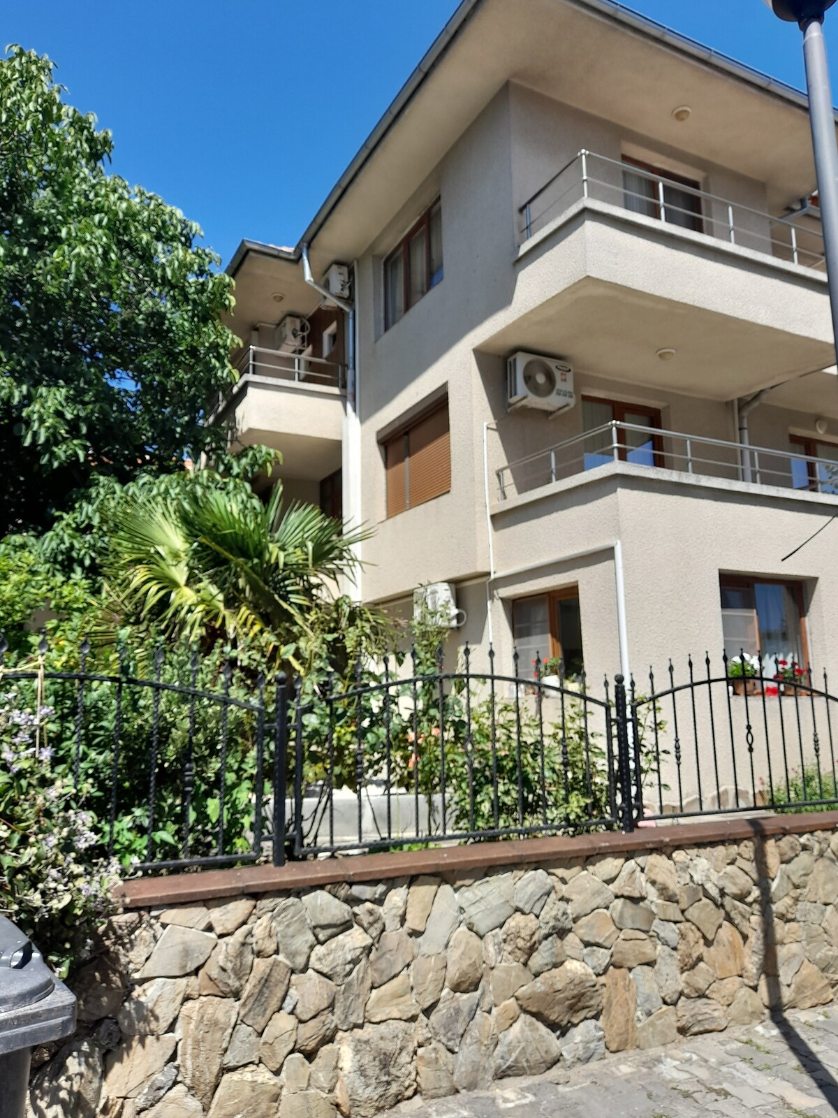 Við bjóðum upp á endurnýjaða íbúð þar sem tekið var á móti fyrstu gestunum árið 2023. Byggingin er staðsett í miðhluta Burgas, nálægt göngugötum borgarinnar frá annarri hliðinni og að sjávargarðinum og ströndinni frá hinni hliðinni. Fyrir sannfæringu gesta er borðstofa með einum útdraganlegum sófa, aðskildum eldhúskassa, einu svefnherbergi með þægilegu rúmi og verönd. Matvöruverslanir, fáar litlar grænmetisverslanir og apótek eru í nokkurra mínútna göngufjarlægð.