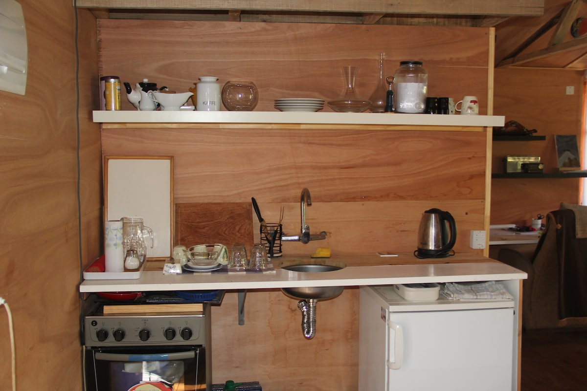 Fullkominn, hlýr og notalegur kofi í stað fallegrar þagnar og útsýnis yfir græna húsið. Hágæða viðareldavél sem gerir það hlýtt á veturna og loftræstikerfi sem gerir það svalt á sumrin. ELDIVIÐUR EKKI INNIFALINN! Já innifalið: Full borðbúnaður Eldunaráhöld Tæki Rafmagnseldavél og hárþurrka Rúmföt og handklæði Baðherbergið er með fallegu antíkbaðkari með útsýni yfir fjöllin og snyrtilega tengingu við nýtt og gamalt.