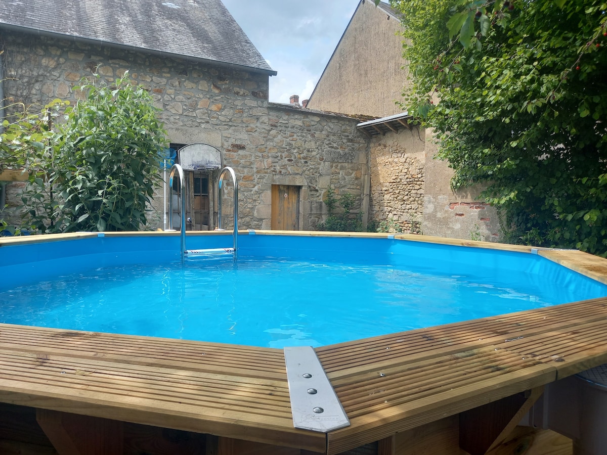 Komdu og uppgötvaðu Moulin de Verrines í Creuse ! Þetta er endurbætt bygging frá 19. öld í rólegheitum. Fullbúinn bústaður fyrir 4 til 6 manns bíður þín. Sundlaug opin frá miðjum maí, Fibre optic 2x400 MB, rúmföt, handklæði og rúmföt eru til staðar. Sumir dagar eru fráteknir en láttu okkur vita ef þeir passa við þær dagsetningar sem þú hefur áhuga á.