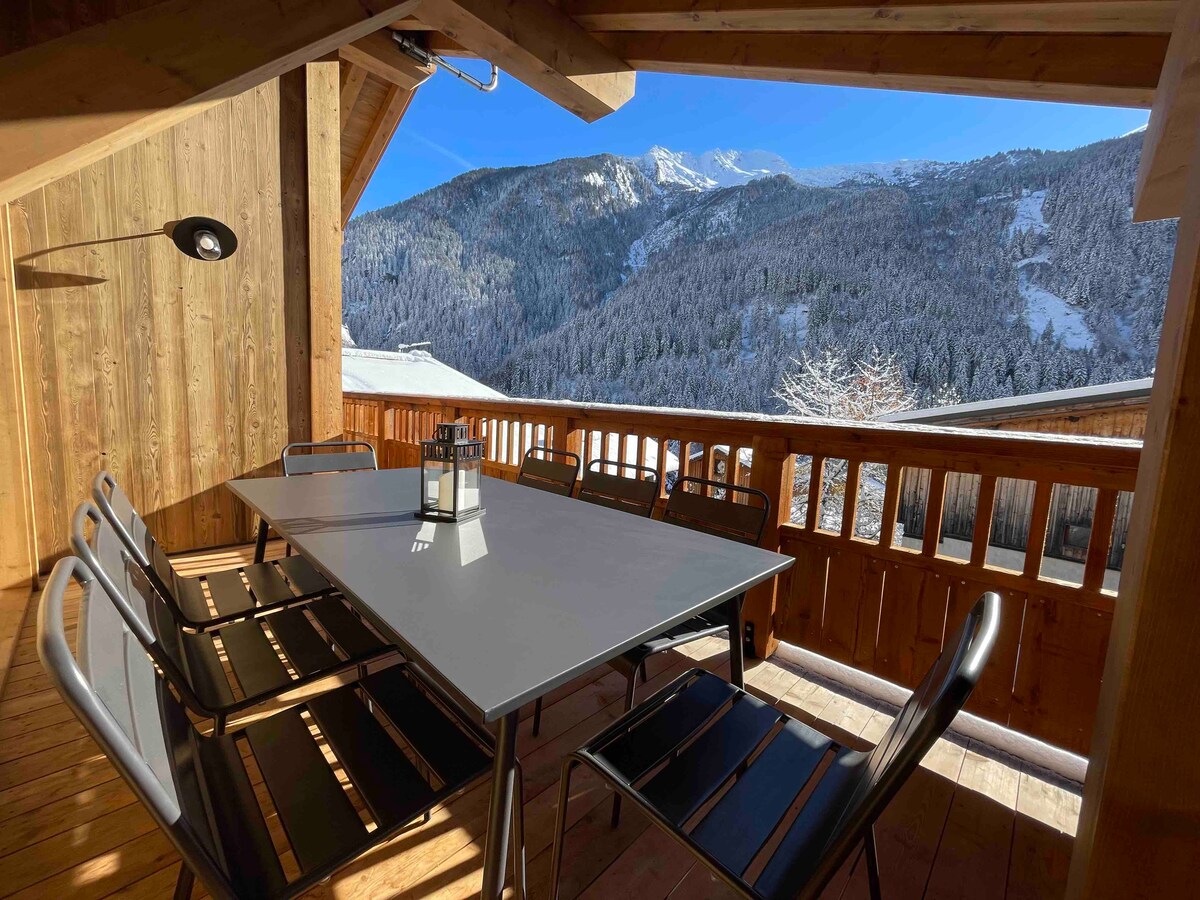 Bústaðurinn er með heilsulind: heitum potti, gufubaði og þakverönd. Öll svefnherbergi eru með fataherbergi og baðherbergi (sturta og salerni) og fyrir suma skrifstofu. Stofan er opin inn í eldhúsið, með stórri setustofu með viðareldavél, stórum gluggum til að njóta útsýnisins og fallegri verönd. Aðgangur að heita pottinum á hverjum degi, einkatími samkvæmt áætlun. Staðsett í hjarta Champagny, nálægt verslunum, skíðasvæði.