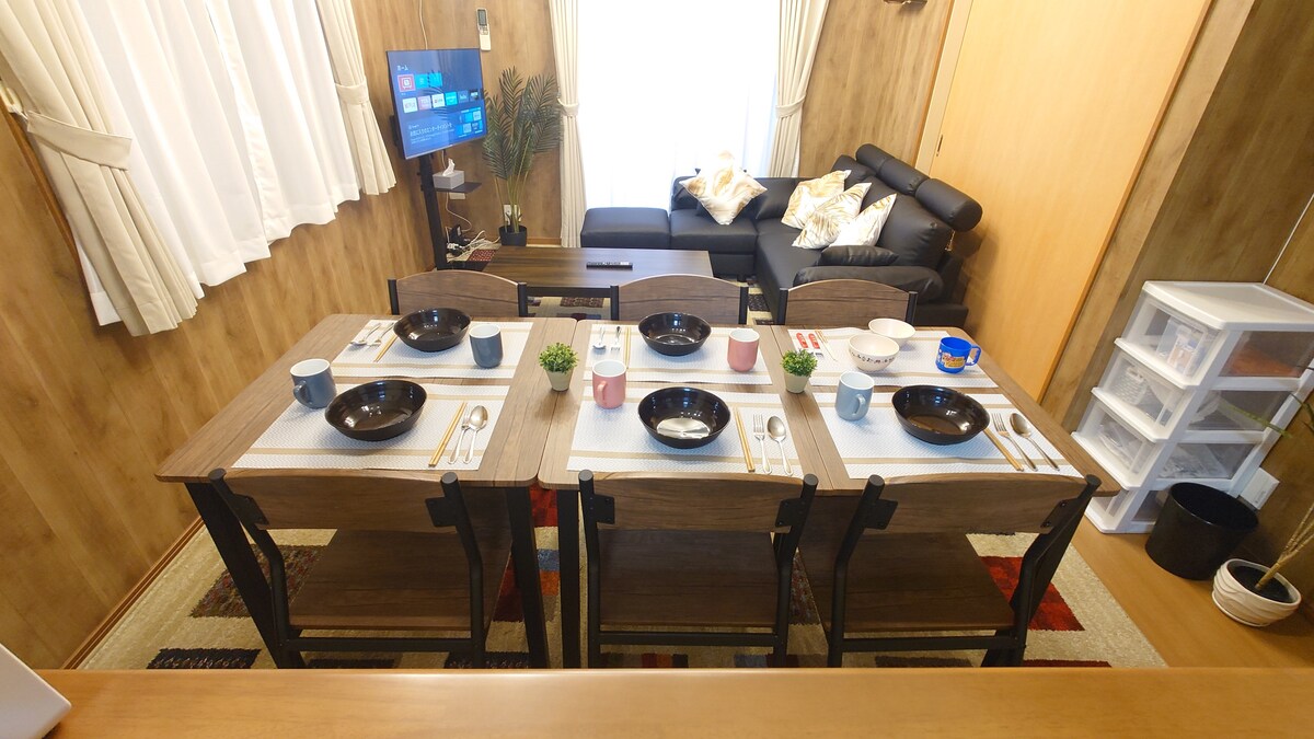 ✨October 18~ May 31: The grand illumination at Nabana no Sato begins! The vast grounds are transformed into a magical world of lights, offering a mesmerizing experience for both children and adults. ✨ NAGOYA KUWANA CHOCO HOUSE offers excellent access to Nagoya city and Nagashima Spa. Perfect for families and groups of friends, with space for up to 12 guests! Spacious two-story entire house 2 bathrooms and 2 toilets for large groups to stay comfortably Fully equipped kitchen for self-catering