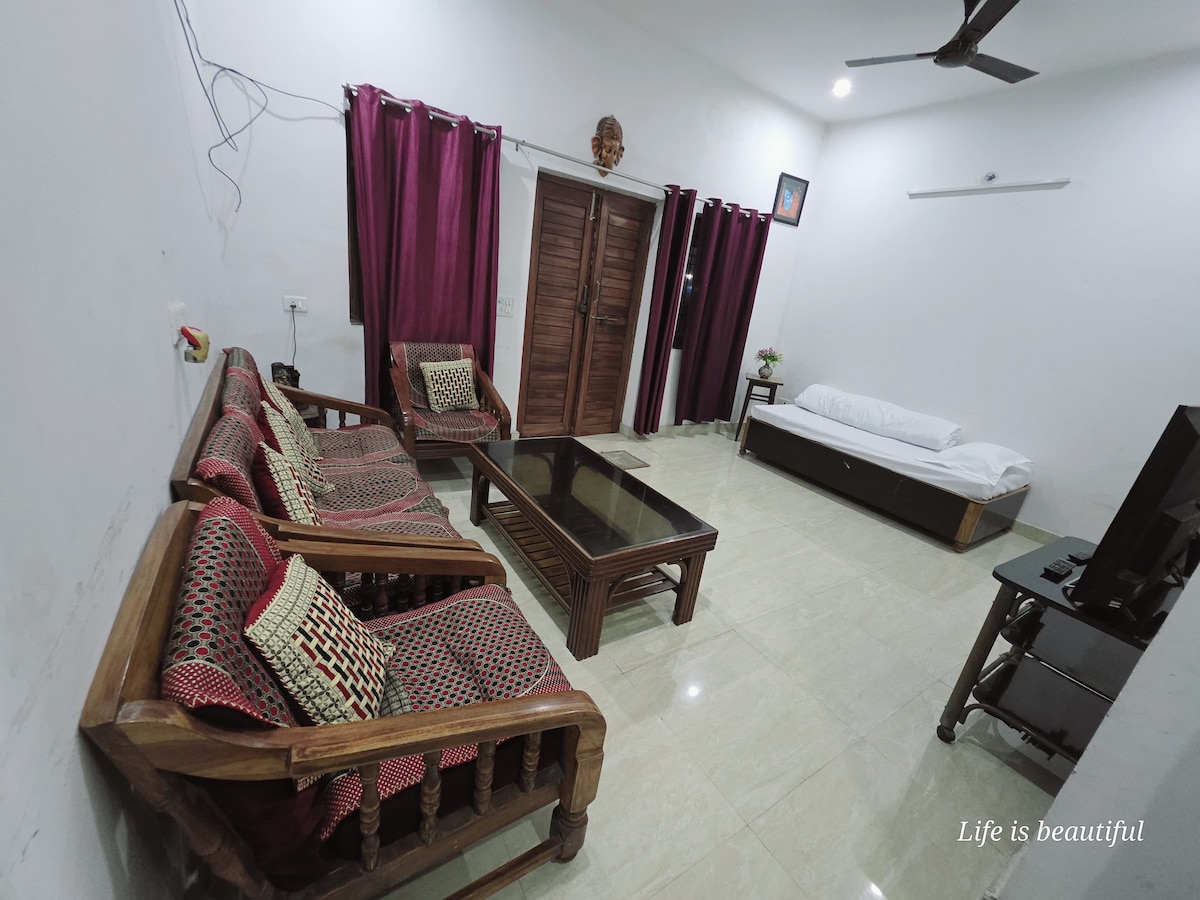 ✨ Upplifðu sjarma Varanasi í notalegri, einkarekinni 1BHK heimagistingu með tveimur King size rúmum í hjarta borgarinnar. Hún er fullkomin fyrir fjölskyldur eða einstaklinga sem vilja frið. Hún er með rúmgott svefnherbergi, nútímalegt eldhús, hreint baðherbergi með geysi,hrein rúmföt, bílastæði, sal með sjónvarpi, sófa og svölum. 🏡 📍 Aðalatriði: ✅ Friðsæl og vel tengd staðsetning ✅ Öryggi bílastæða og eftirlitsmyndavéla ✅ Góður aðgangur að helstu stöðum: 4 mílur til Kashi Vishwanath 12 mílur á flugvöllinn ✈️ Njóttu þægilegrar og eftirminnilegrar dvalar! 🌟