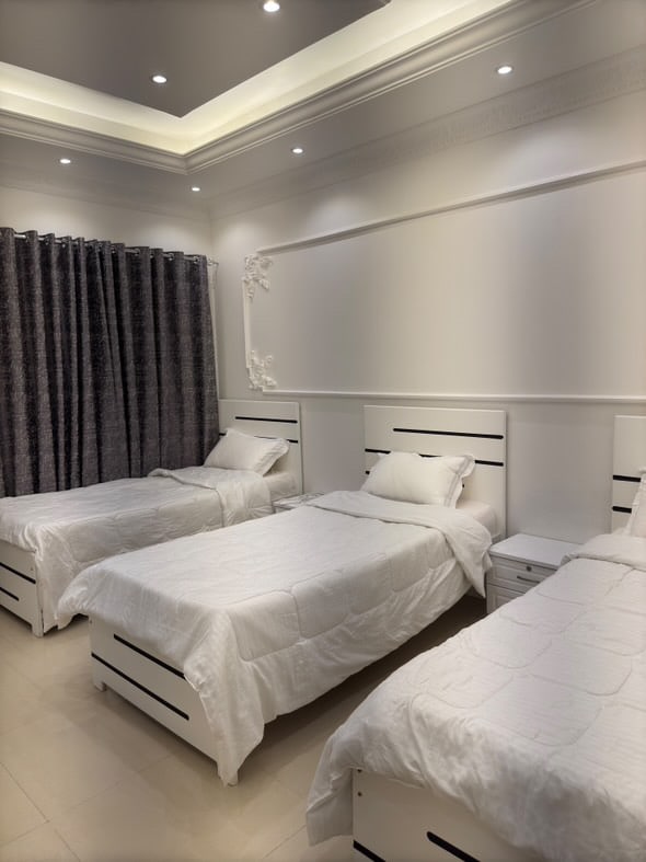 Slakaðu á með fjölskyldu þinni eða vinum á þessum friðsæla stað. það er staðsett í Sharjah uae. Matvöruverslanir sem eru opnar allan sólarhringinn eru í nokkurra skrefa fjarlægð. Central Market er í 10 mínútna göngufjarlægð. mörg bílastæði eru í boði allan sólarhringinn fyrir gesti. Útigarður þar sem þú getur slakað á í fersku lofti. Við erum með einstaklingsbundna loftræstingu í hverju herbergi. Háhraðanet fyrir fjarvinnu. Athugaðu: Við leyfum aðeins ferðamönnum eða fjölskyldum að gista hér. Ekki bóka þessa eign vegna tengsla eða stefnumótunar.