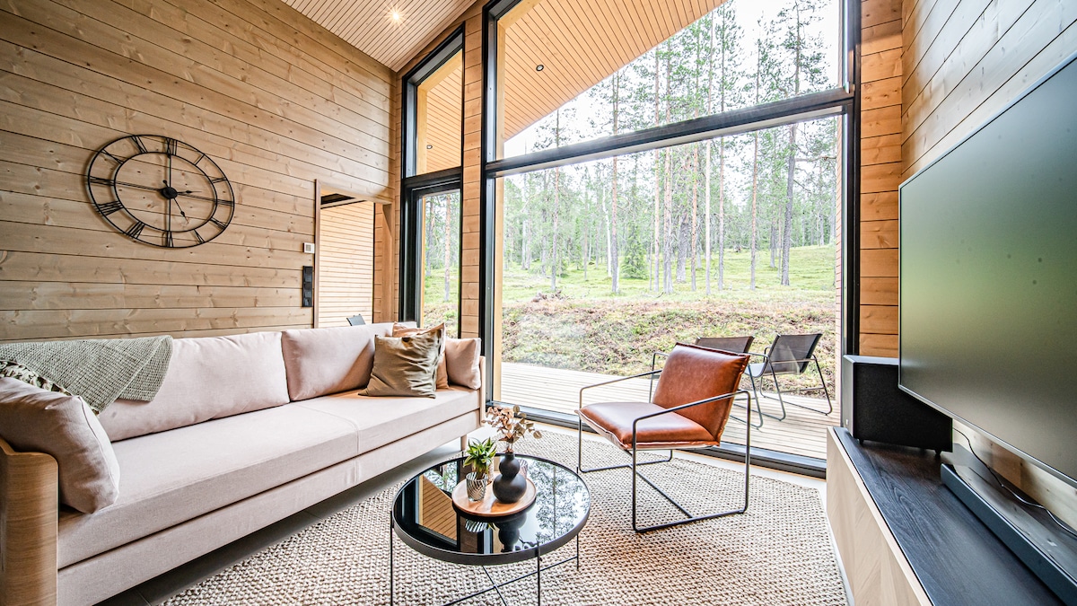 Hér er ekkert of langt í burtu: Skíðabrautir byrja við útidyrnar, verslanir og veitingastaðir eru í göngufæri og meira að segja er auðvelt að komast á skíðasvæðið með skíðarútunni eða eigin bíl. Fyrir fjarvinnufólk erum við með tölvuborð, hratt þráðlaust net og 27" skjá uppi. Á veturna getur þú séð norðurljósin frá útidyrunum þökk sé opnu umhverfi íbúðarinnar.