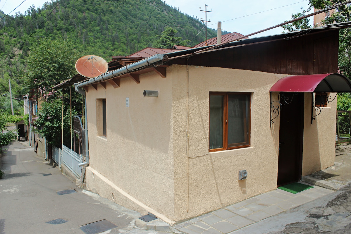 Bústaðurinn er umkringdur náttúrunni í barnvænu umhverfi og er staðsett á fallegu svæði í Borjomi gilinu í 1.300 metra hæð yfir sjávarmáli og býður upp á ógleymanlegt útsýni yfir fjöllin, skóginn og dalina hvenær sem er ársins. 3000 fermetra landsvæði. Gistingin okkar er staðsett í aðeins 30 metra fjarlægð frá Pine-skóginum og hentar mjög vel fyrir gesti sem leita að hugarró og náinni snertingu við náttúruna.