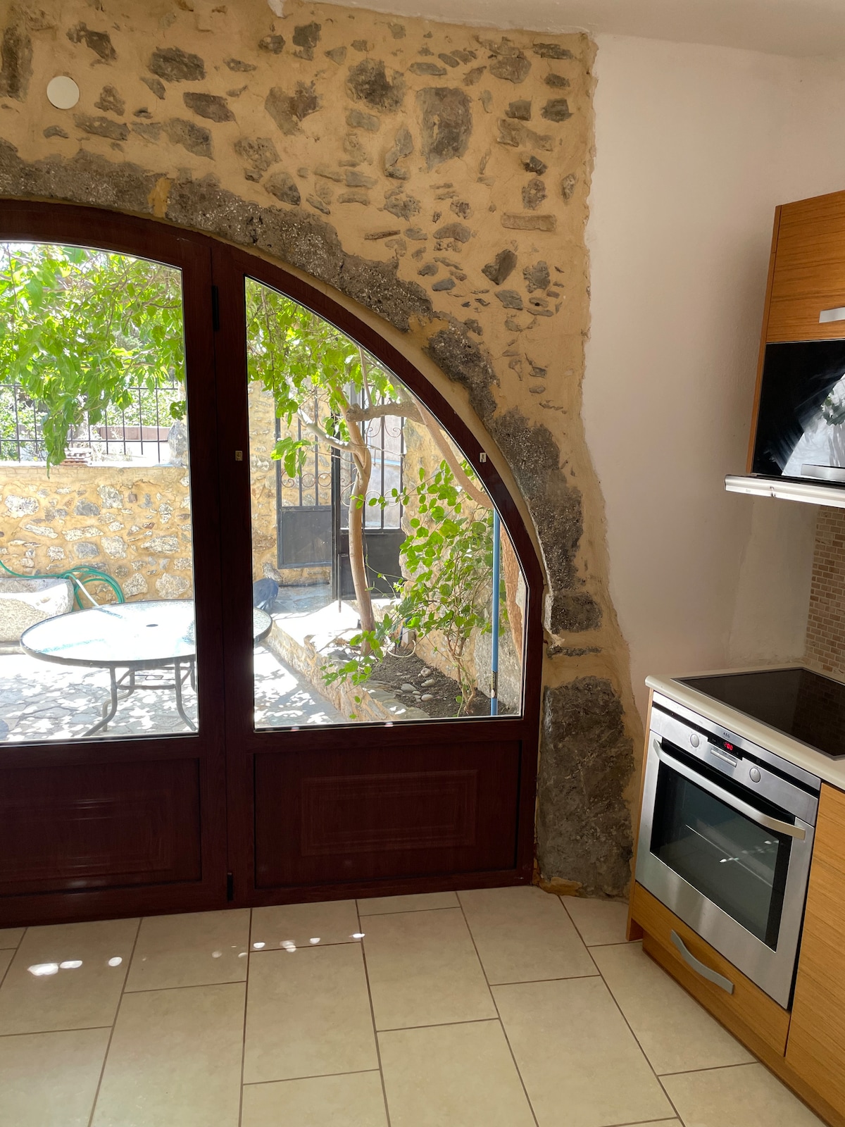 It is a renovated mansion located in the seaside village of Kerames of the Municipality of Agios Vassiliou Rethymno, at a distance of 34 km from Rethymno and 4 km from the southern blue beaches. The property has 2 spacious air-conditioned bedrooms, with TVs throughout, the kitchen has an oven, hob and fridge. The bathroom has hot water, a washing machine and a hairdryer. Features a comfortable terrace overlooking the Libyan Sea.