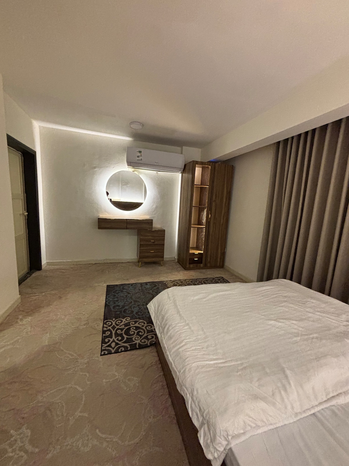 Njóttu einstakrar upplifunar í einkasvefnherbergi sem býður upp á afslöppun og þægindi. Íbúðin er með rúmi og stofu þar sem þú getur notið þess að horfa á 55 tommu snjallskjá. Hér er einnig eldhús og kaffi sem uppfyllir allar þarfir þínar. Svefnherbergi á hóteli með snjöllum inngangi og þægilegri hönnun 5 mínútna ganga að Al-Ahsa-verslunarmiðstöðinni 5 mínútna göngufjarlægð frá King Abdullah Park 10 mínútna akstursfjarlægð frá King Faisal University 10 mínútna akstursfjarlægð frá Listaháskólanum 10 mínútna akstursfjarlægð frá Al-Ahsa-alþjóðaflugvellinum 15 mínútna akstur á lestarstöðina Kaffihús eru nálægt veitingastöðum Stúdíóíbúð með þægilegri hönnun Lúxusfrágangur