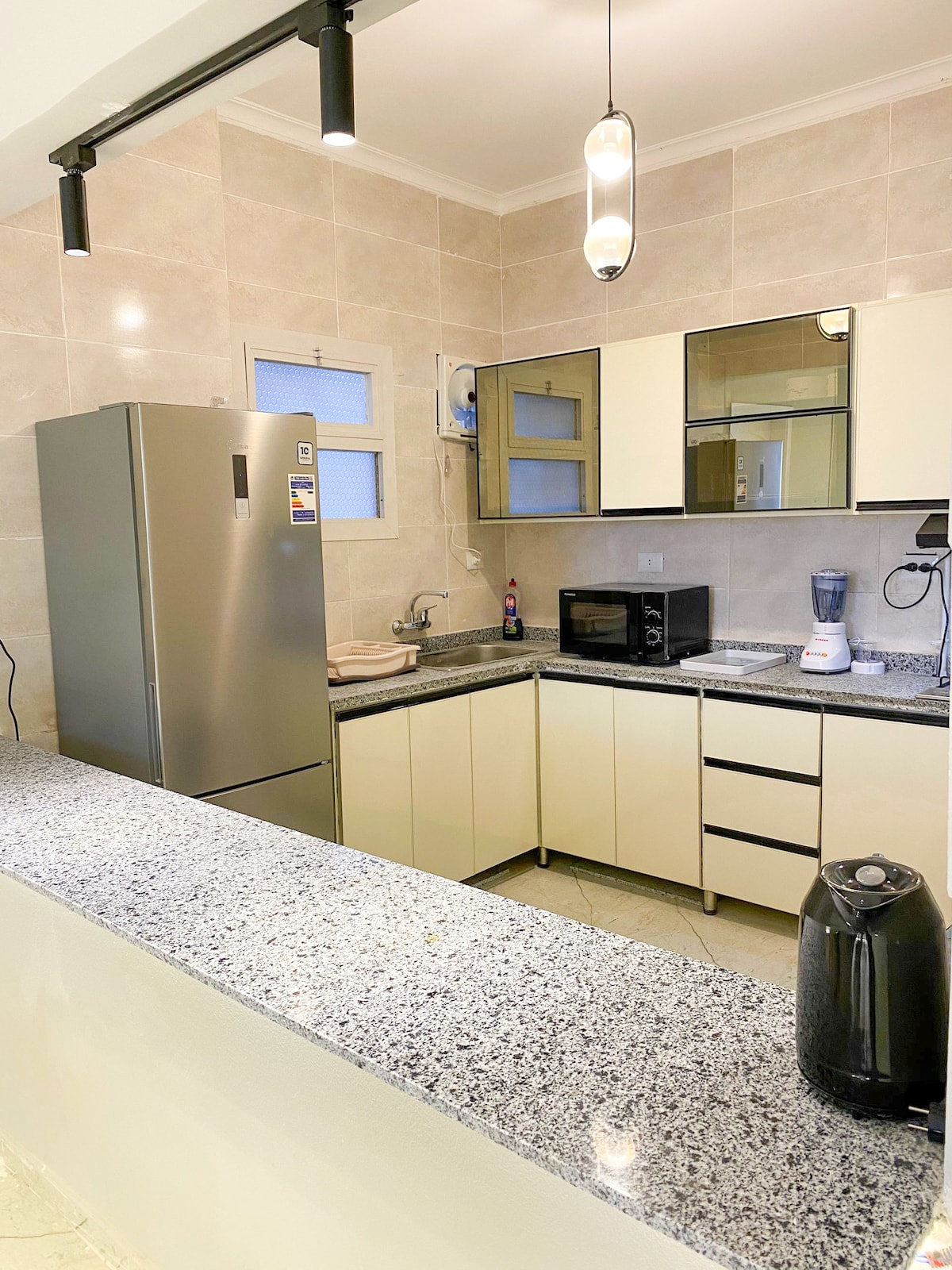 Njóttu einstakrar gistingar í íbúð okkar í bóhem- marokkóskum stíl í miðborginni sem býður upp á þægindi og glæsileika. Slakaðu á á svölunum með útsýni yfir borgarvirkið Saladin og sötraðu te í friðsælu andrúmslofti. Fullbúið eldhúsið gerir þér kleift að útbúa máltíðir auðveldlega með ókeypis drykkjum og þráðlausu neti. Þú hefur skjótan aðgang að egypska safninu, Abdeen-höllinni og veitingastöðum á staðnum. Þessi íbúð er tilvalin fyrir vinnu eða afslöppun og tryggir ógleymanlega dvöl.