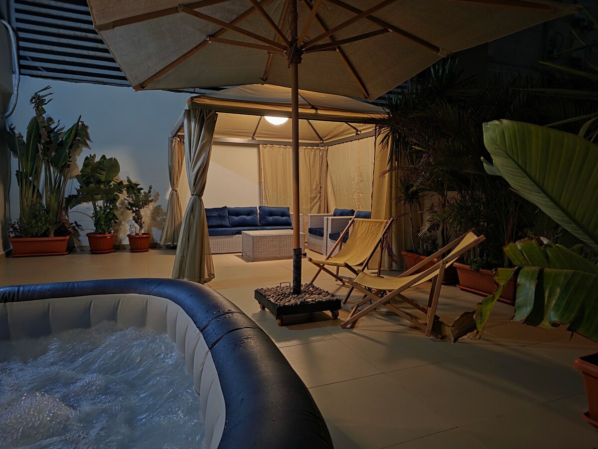Fyrsta svefnherbergi með heitum potti, íbúð 5 mínútna fjarlægð frá CAI-flugvelli, sjálfsinnritun