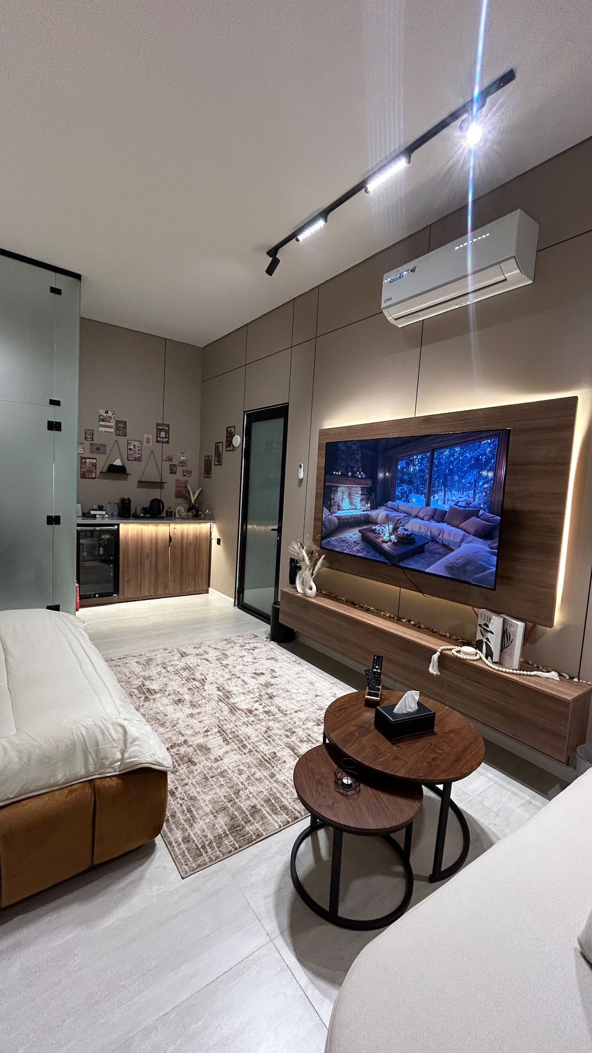 Njóttu einstakrar upplifunar í einkasvefnherbergi sem býður upp á afslöppun og þægindi. Íbúðin er með rúmi og stofu þar sem þú getur notið þess að horfa á 55 tommu snjallskjá. Hér er einnig eldhús og kaffi sem uppfyllir allar þarfir þínar. Svefnherbergi á hóteli með snjöllum inngangi og þægilegri hönnun 5 mínútna ganga að Al-Ahsa-verslunarmiðstöðinni 5 mínútna göngufjarlægð frá King Abdullah Park 10 mínútna akstursfjarlægð frá King Faisal University 10 mínútna akstursfjarlægð frá Listaháskólanum 10 mínútna akstursfjarlægð frá Al-Ahsa-alþjóðaflugvellinum 15 mínútna akstur á lestarstöðina Kaffihús eru nálægt veitingastöðum Stúdíóíbúð með þægilegri hönnun Lúxusfrágangur