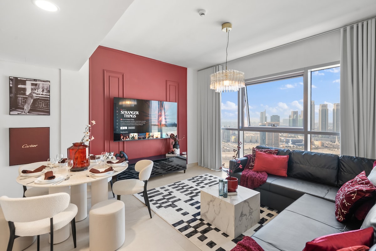 Gistu í þessari glæsilegu tveggja herbergja íbúð á Yas-eyju sem er tilvalin fyrir fjölskyldur, vini eða viðskiptaferðamenn. Njóttu rúmgóðrar stofu, fullbúins eldhúss og þægilegra svefnherbergja með nægri geymslu. Í íbúðinni eru nútímaþægindi eins og ókeypis þráðlaust net, loftkæling og þvottavél/þurrkari. Staðsett í nokkurra mínútna fjarlægð frá vinsælum stöðum eins og Yas Mall, Ferrari World og Yas Waterworld. Fullkomið til að skoða Yas-eyju í þægindum og stíl.