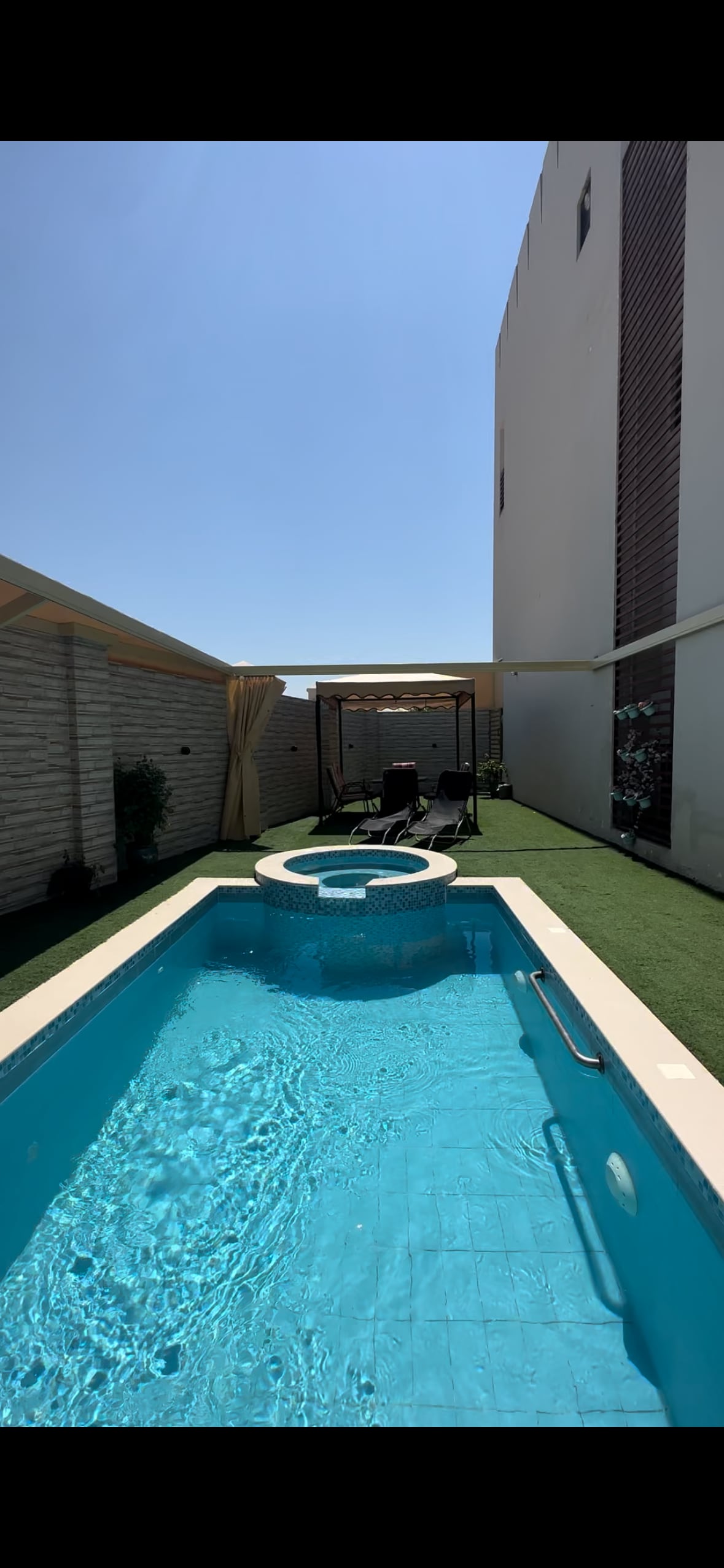 Lúxus Villa með einkasundlaug (ekki deilt), þess 15 -25 mínútur frá flugvellinum 24 klst eftirlifandi öryggi. Fjarlægð frá miðborg Muscat er 30 mín( 32 km). Það er lulu hypermarket 5 mín akstur frá húsinu, saloon og heilsulind fyrir dömur og góð strönd full af skemmtun fyrir fjölskyldu og börn með mismunandi kaffihúsum og veitingastöðum með fallegu útsýni 5 mín akstur 2,5 km fjarlægð frá Villa , alseeb hefðbundið suq. &, verslunarmiðstöðvar og verslunarmiðstöðvar