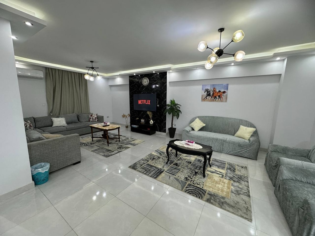 The perfect Cairo home for families! This 6th-floor retreat offers the rare luxury of TWO Master Suites + a twin room—giving parents the privacy they deserve. 🛍️ Walk Everywhere: Steps to Genena Mall & top dining. ❄️ Total Comfort: New split ACs & "unwind" balcony. 🍳 Chef’s Kitchen: High-end appliances for family meals. ⚡ Stay Connected: High-speed Wi-Fi & Smart TV. 🛡️ Safe & Easy: 24/7 security, 2 elevators & parking. Spacious, secure, and pristine. Book your family’s best stay!