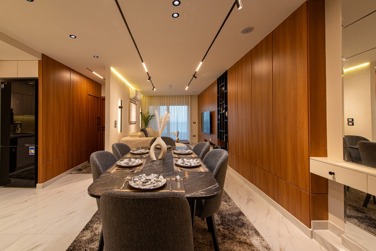 Njóttu lúxusgistingar í hjarta Alexandríu í þessari nútímalegu íbúð með einu rúmi við sjávarsíðuna í Saba Pasha, einu glæsilegasta hverfi borgarinnar ✔ Magnað sjávarútsýni ✔ Fullkomlega nýjar innréttingar með glæsilegum, nútímalegum innréttingum ✔ Þægilegt king-size rúm + notalegt setusvæði ✔ Háhraða þráðlaust net og snjallsjónvarp ✔ Fullbúið eldhús ✔ Loftræsting sem hentar þér Öll glæný tæki oghúsgögn Fullkomið fyrir fjölskyldufólk, viðskiptaferðamenn eða gesti sem eru einir á ferð og vilja þægindi, stíl og magnað útsýni.