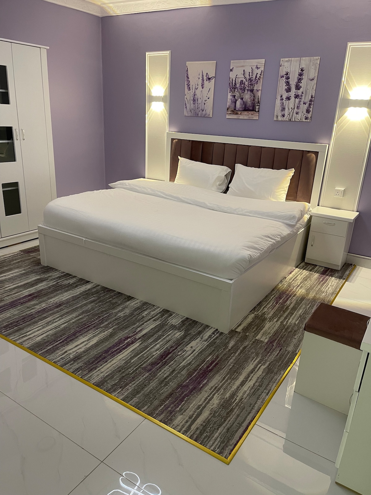 Ný, nútímaleg, rúmgóð íbúð á stefnumarkandi stað í Al-Wissam-hverfinu í Taif, staðsett á milli bestu staðanna til að ganga um í Taif, Al-Shifa og Al-Hada, nálægt Mekka, um 50 mínútur, hverfið er kyrrlátt, nálægt miðborginni og langt frá fjölmennum svæðum, öll þjónusta er í boði í ríkum mæli, veitingastaðir, markaður, það er ókeypis þráðlaust net og sambyggð húsgögn, þar er margvísleg aðstaða Tvö svefnherbergi, annað með hjónarúmi og hitt með tveimur einbreiðum rúmum, stofa með sófa sem hentar vel fyrir afslöppun og svefn, frábær loftræsting, þvottahús með þvottavél, þurrkari, strauverkfæri, baðherbergi, lítið eldhús og ókeypis einkabílastæði