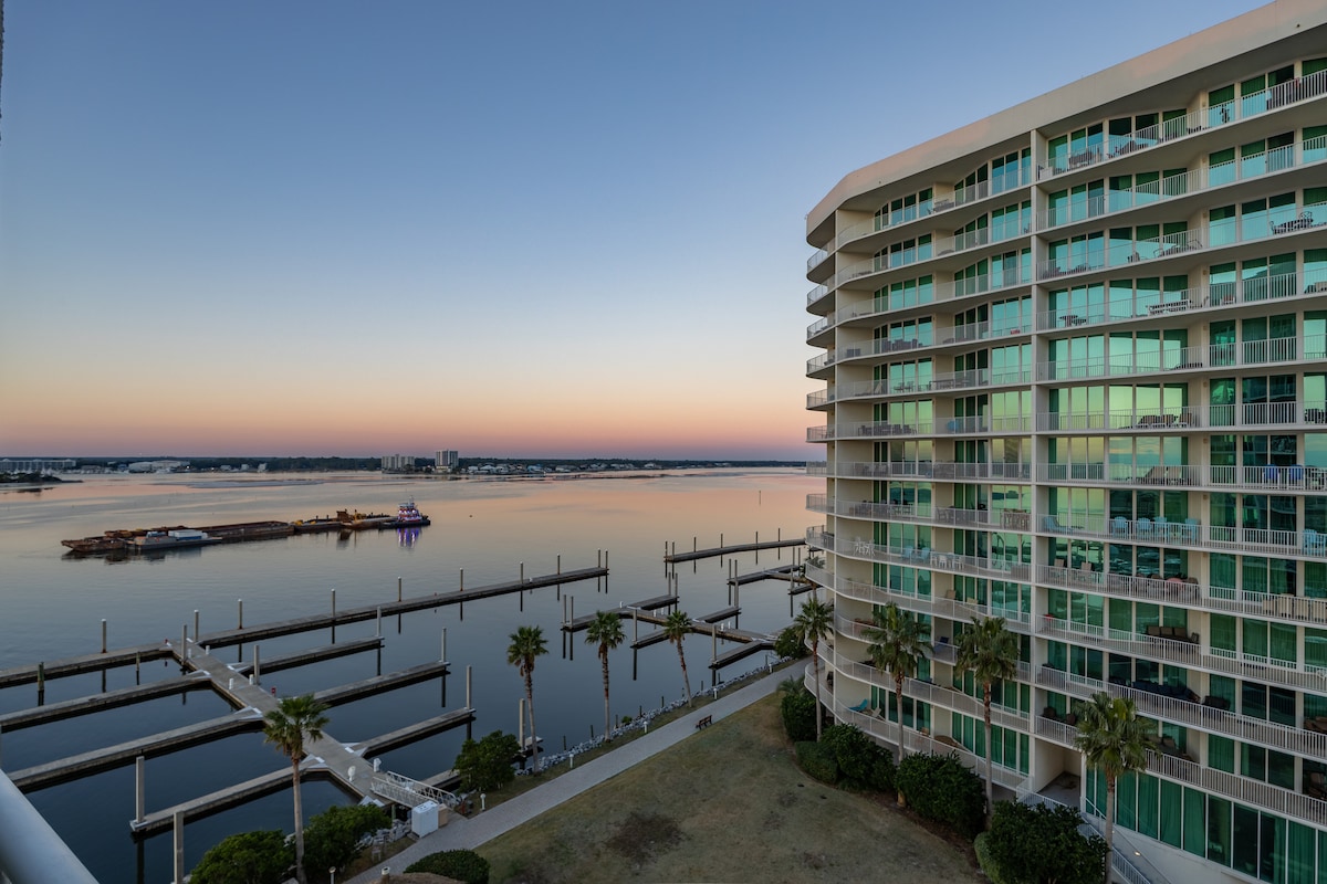 **Paradís bátsmanna** Verið velkomin í bestu útsýnið yfir Cotton Bayou með þessari íbúð við vatnið með tveimur svefnherbergjum, tveimur baðherbergjum og ótrúlegu lofti sem börn og fullorðnir munu njóta. Slakaðu á einkasvölunum og horfðu á báta sigla fram hjá á meðan tíminn líður og streitan hverfur. Einkasmábátahöfnin er í boði fyrir gesti fyrir 50 Bandaríkjadali á dag eða 250 Bandaríkjadali á viku, sem felur í sér rafmagn, vatn, fiskhreinsunarstöð og einkasjósetningu báta. Gakktu í minna en 10 mín fjarlægð frá Cotton Bayou-almenningsströndinni í nágrenninu.