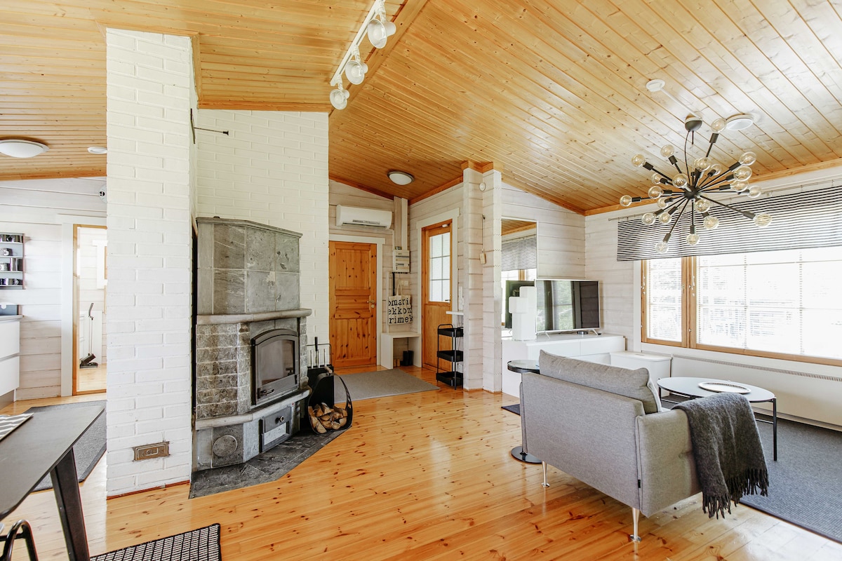 Vel búið og rúmgott einbýlishús með húsagarði í sveitinni býður upp á möguleika á afslöppuðu fríi og gistingu með allri fjölskyldunni. Frábær staður fyrir vinnuhópa líka! Þar eru 5 fullorðinsrúm og auk þess 130 cm (+35 cm) barnarúm. Hægt er að skipta 160 cm hjónarúminu í tvö aðskilin 80 cm rúm eftir ósk. Ferðarúm er einnig í boði gegn beiðni. Vinsamlegast láttu okkur vita hverjir koma með þér þegar þú bókar svo að við getum boðið þér sem besta upplifunina. 🥰