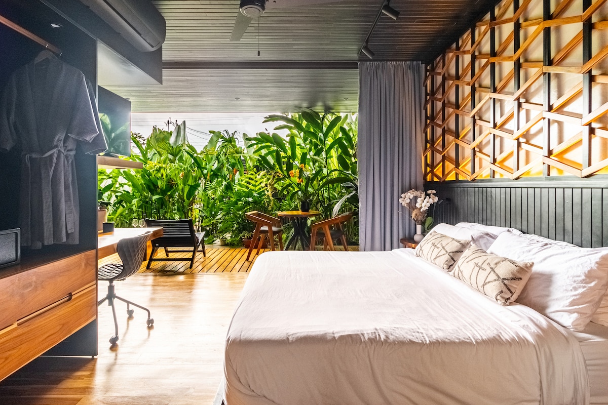 En Casa Del Mono, la naturaleza no es el escenario, es la protagonista. Ubicada en una reserva natural de La Fortuna, aquí nacen aguas puras que bajan por la montaña, dando vida a ríos y senderos que te invitan a explorar. Despierta entre los sonidos de la selva, con monos juguetones en los árboles y la tranquilidad de un entorno intacto. Regresa cada día a una casa cálida y serena, rodeada de selva y cielo abierto. Una experiencia auténtica para quienes buscan belleza, calma y conexión.