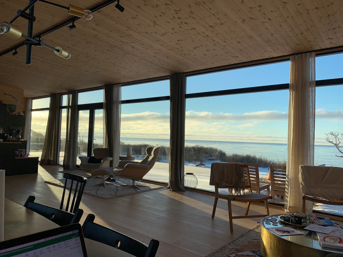 Enjoy truly unique nature and total privacy in a glass cabin by the sea. The villa is built just a short stone throw away from the waters edge to be as close to nature as possible. Have a swim in your own 12 meter private heated pool or just relax by the fire pit and enjoy the scenery. You have access to over 700m of private seafront land and no neighbors in sight. If you're looking for a private nordic paradise immersed in nature yet close to activities, this is something for you to enjoy.