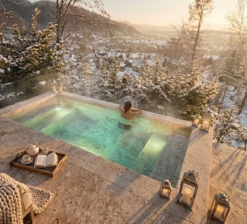 Orlofshús með sundlaug í miðri náttúrunni