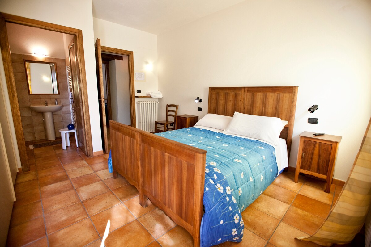 Hér færðu hlýlegar móttökur og gestrisni fjölskyldunnar. Vörurnar á bænum okkar verða til ráðstöfunar fyrir morgunverð og það eru tveggja manna herbergi með sér baðherbergi; þú getur einnig notað stóran pott með nuddpotti. Í skóginum milli kastaníutrjáa og villts „rocche“ er jarðfræðilegt fyrirbæri og þú getur farið í notalega göngutúra, kannski á hestbaki eða á fjallahjóli. Við skipuleggjum einnig heimsóknir og smökkun á vínveitingastöðum á svæðinu. Af hverju ekki að fara í ferð upp og niður aflíðandi hæðirnar í Roero